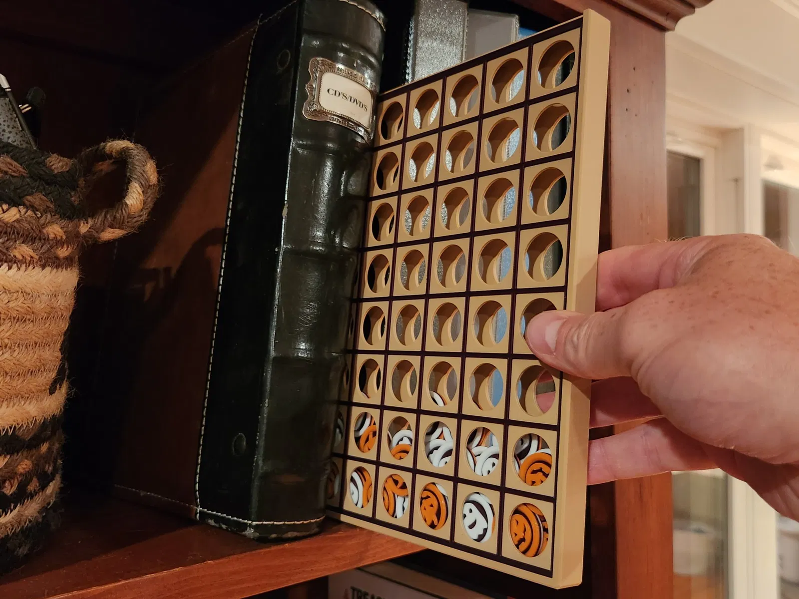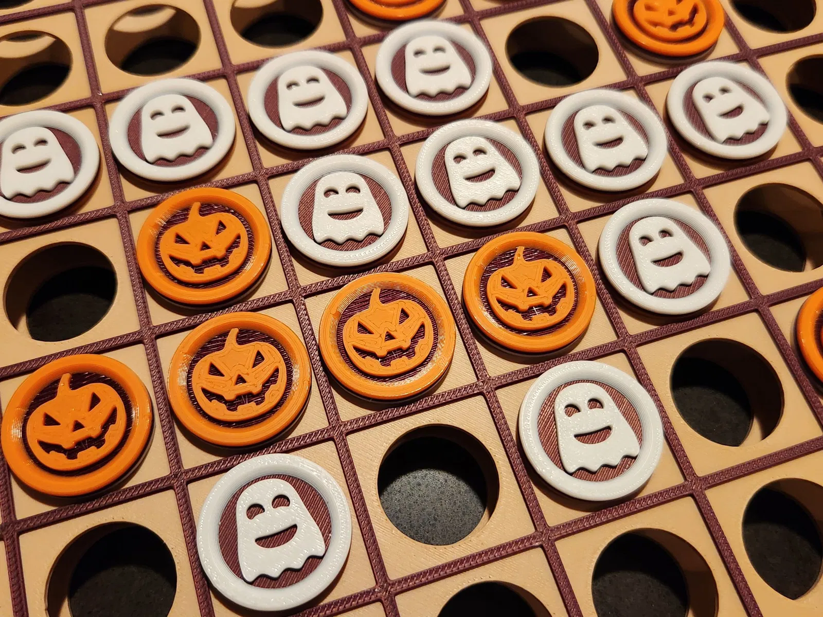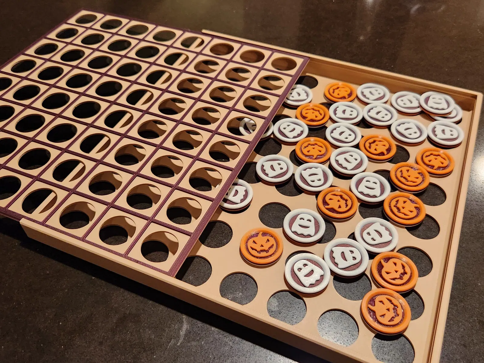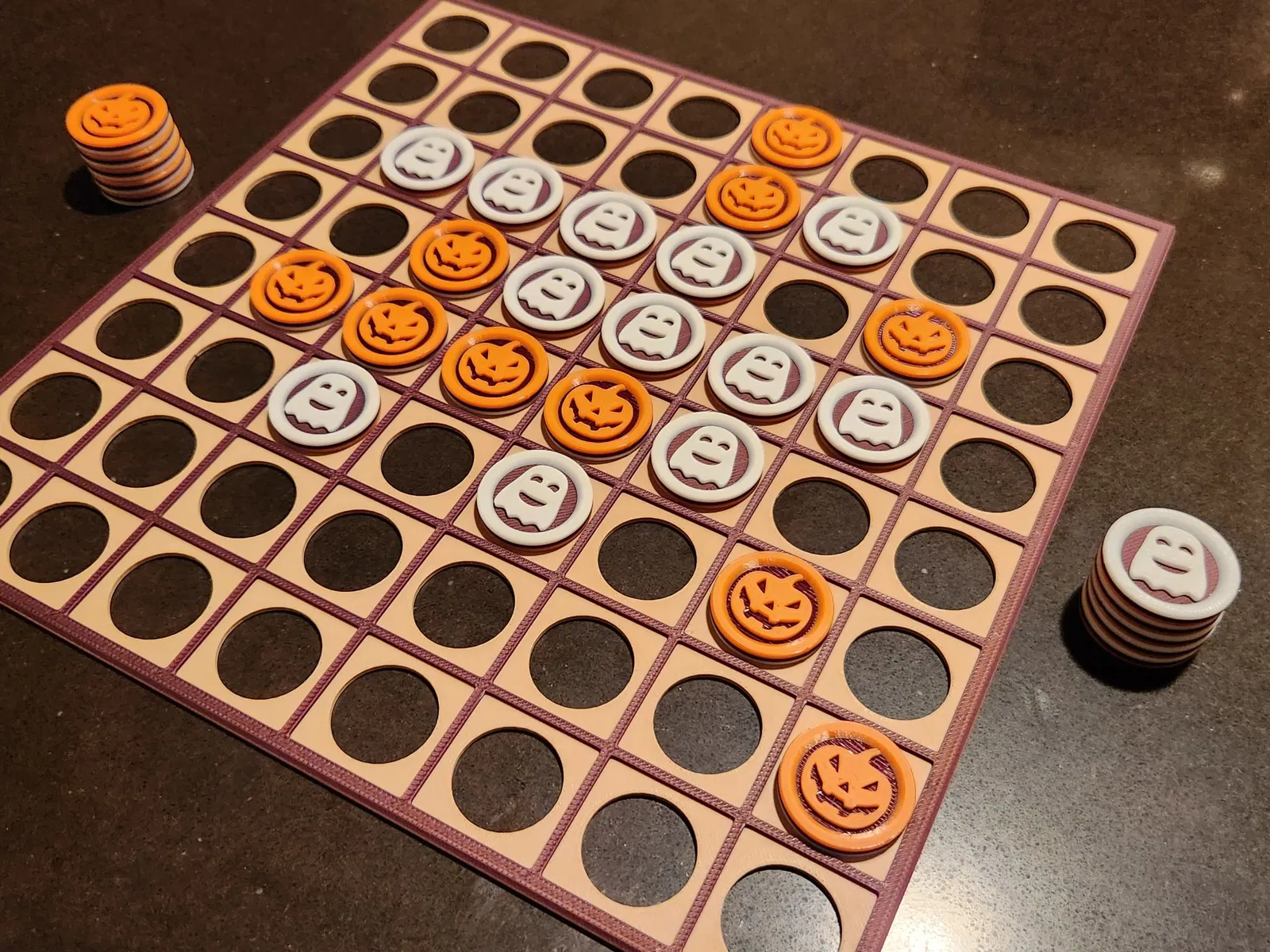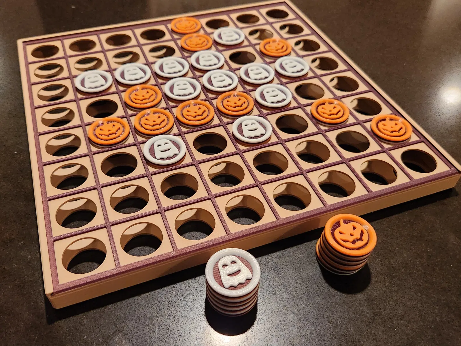 Trò chơi cờ Othello cổ điển (còn được biết đến với tên gọi “Reversi”), với các quân cờ được thiết kế theo chủ đề Halloween dễ thương, và sẵn sàng để bạn in! Bàn cờ được thiết kế để có thể trượt vào hộp được cung cấp, cho phép bạn dễ dàng lưu trữ tất cả các quân cờ và gọn gàng cất nó trên kệ khi không sử dụng.