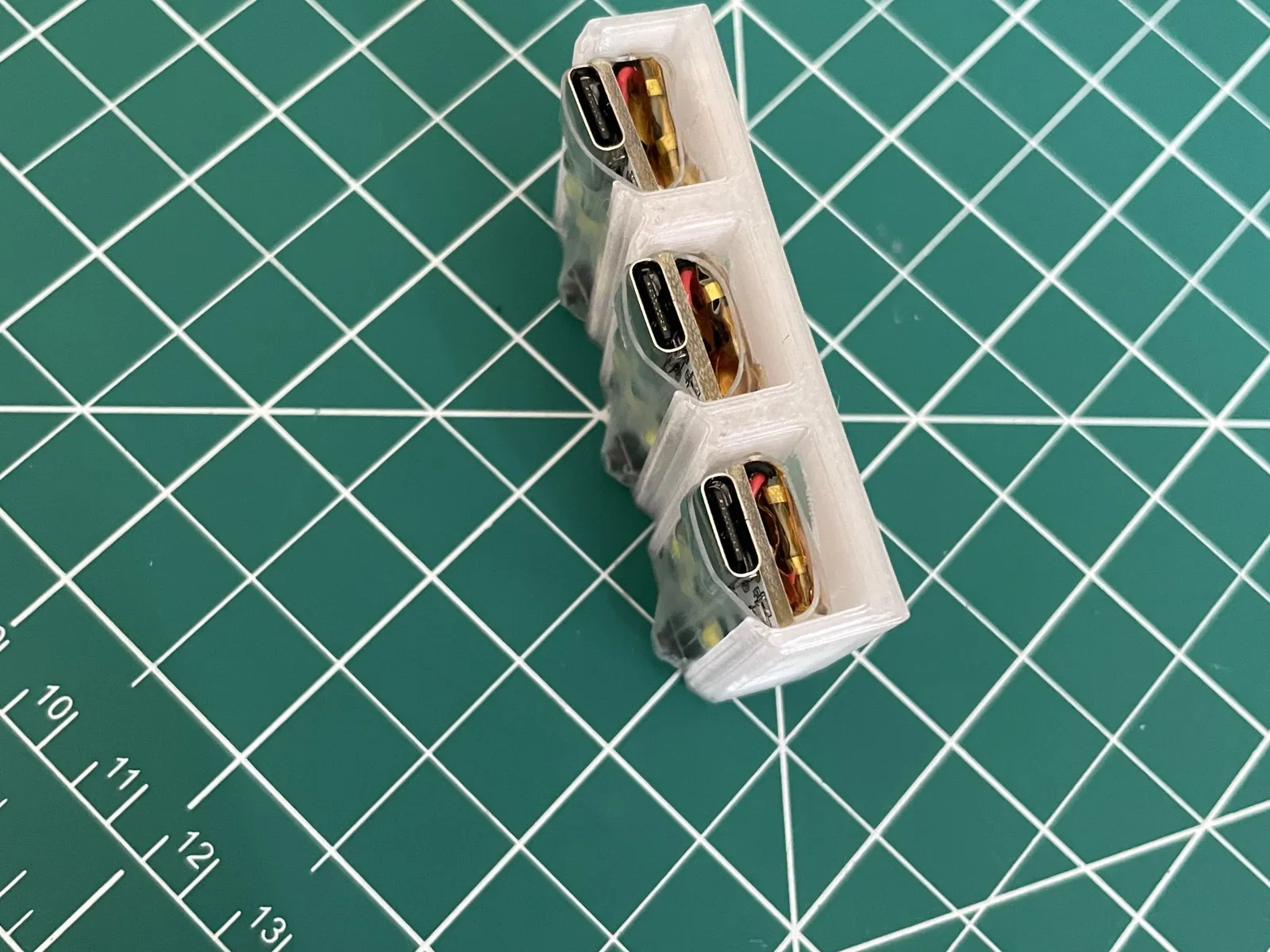 Chứa 3 đèn nháy Vifly, một mẫu có lỗ hơi lớn cho hai nam châm 20x20x2mm.
