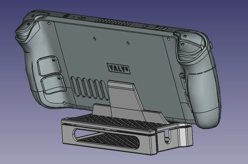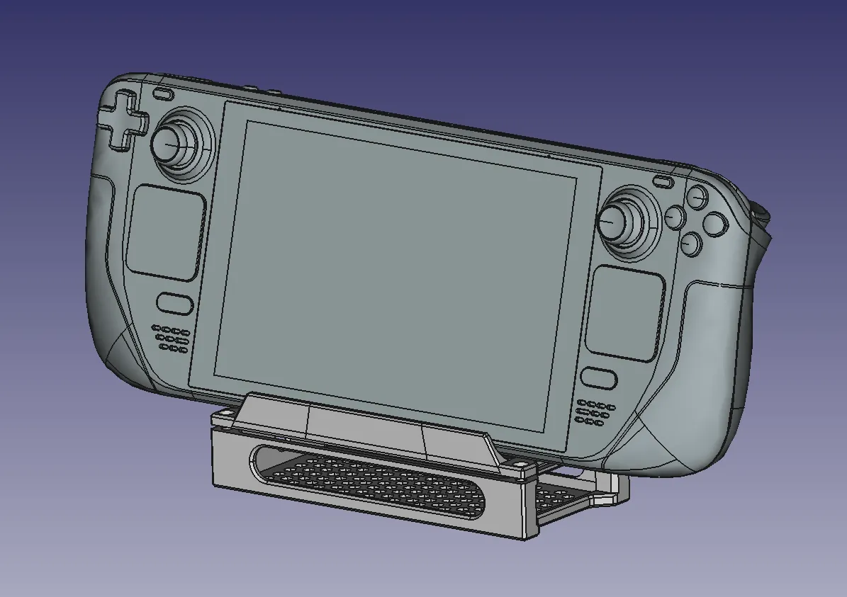 Cần hỗ trợ (các cạnh trên chỉ mang tính thẩm mỹ). Cần 4 chèn M3 có ren và bu lông M3x5 (các hỗ trợ cũng M3x8). Bạn cũng sẽ cần một cáp mở rộng USB-C để có thể kết nối dock USB với Steamdeck. Giá đỡ dựa trên mẫu được sử dụng trong mô hình https://www.printables.com/model/295074 và rộng hơn một chút so với yêu cầu = Để sử dụng với deck trong một vỏ TPU hoặc với một số miếng đệm chống trượt gắn vào giá đỡ. Nếu không, deck sẽ bị trượt. Gắn các miếng đệm/chân chống trượt ở dưới cùng để cải thiện thông gió và ngăn giá đỡ trượt trên bàn của bạn.