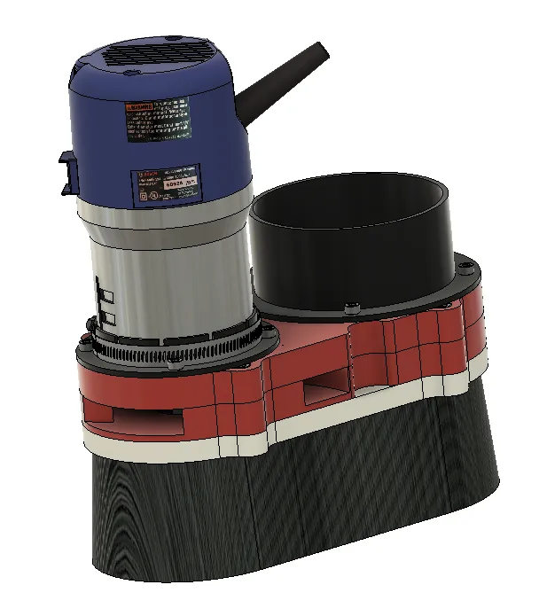 Khởi động bụi cho bộ định tuyến Bosch 1617 với bộ chuyển hướng không khí và vòng bụi từ tính. Các bộ điều hợp ống chân không 4 "và 3" được bao gồm.