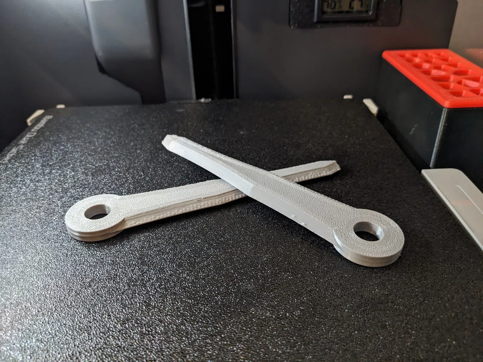 Tôi đã cố tình va vào những viên đá lớn, thiệt hại duy nhất thấy được trên lưỡi cắt là sự tách rời giữa các bức tường và phần bên trong nhưng nó vẫn cắt tốt, tôi khuyên bạn nên in với 100% bức tường ở đầu lưỡi để tránh vấn đề này.