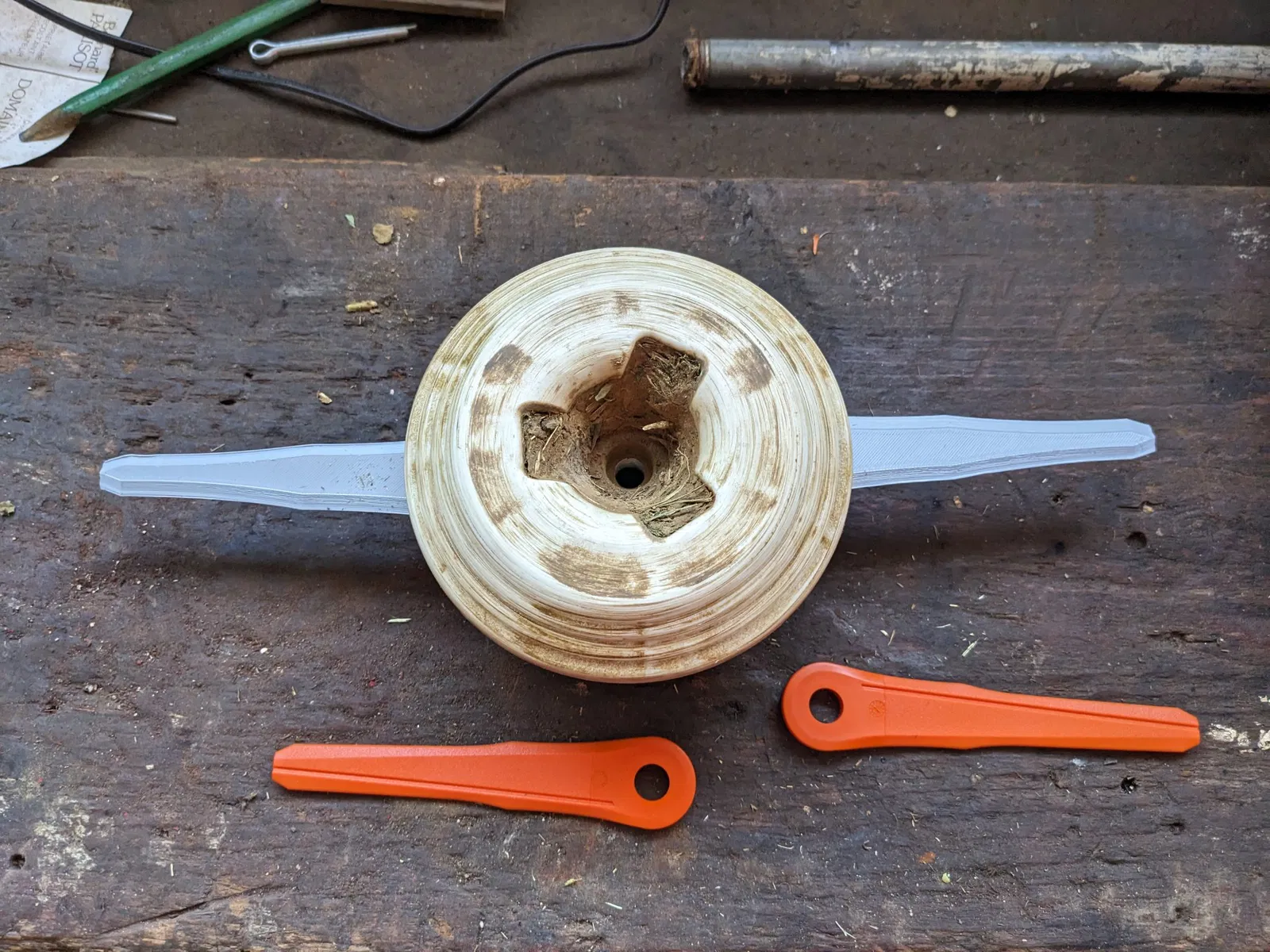 Lưỡi cắt trên đầu cắt Polycut của tôi liên tục bị gãy khi va vào những viên đá nhỏ hoặc cành cây và tôi nghĩ rằng tôi có thể in một số lưỡi bằng TPU.