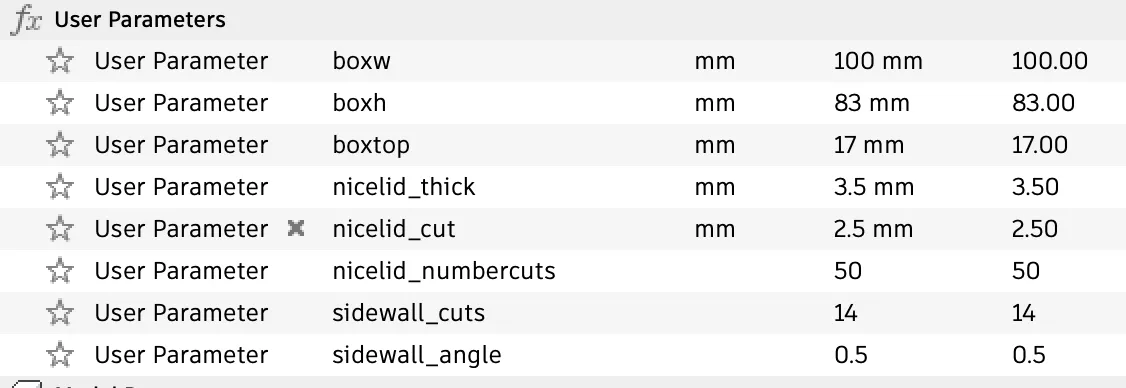 Nếu các tệp cung cấp không phù hợp với nhu cầu của bạn, vui lòng xem tệp fusion360 được bao gồm. Có ba tham số để sửa đổi: