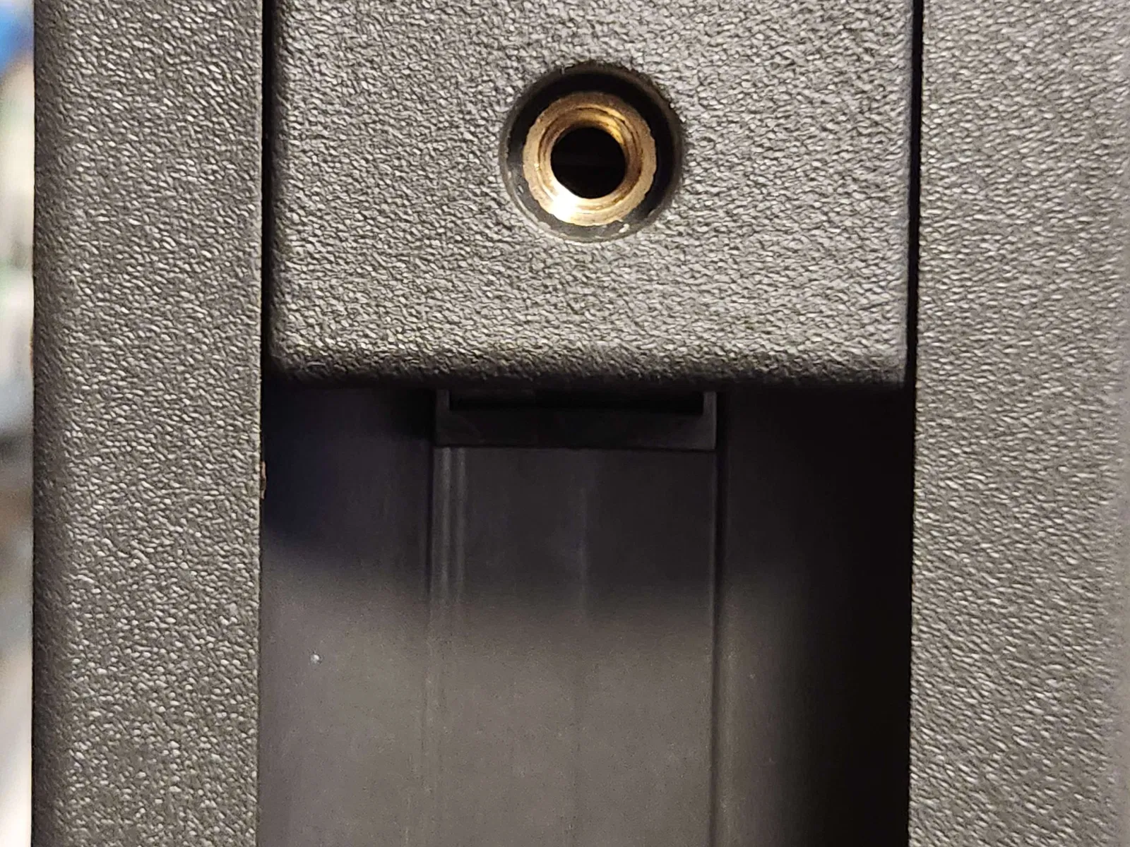 - Quay lại giá đỡ trên cổ, tháo vít và uốn mảnh in vào vị trí sao cho mảnh chèn nằm bên trong lỗ vít.
