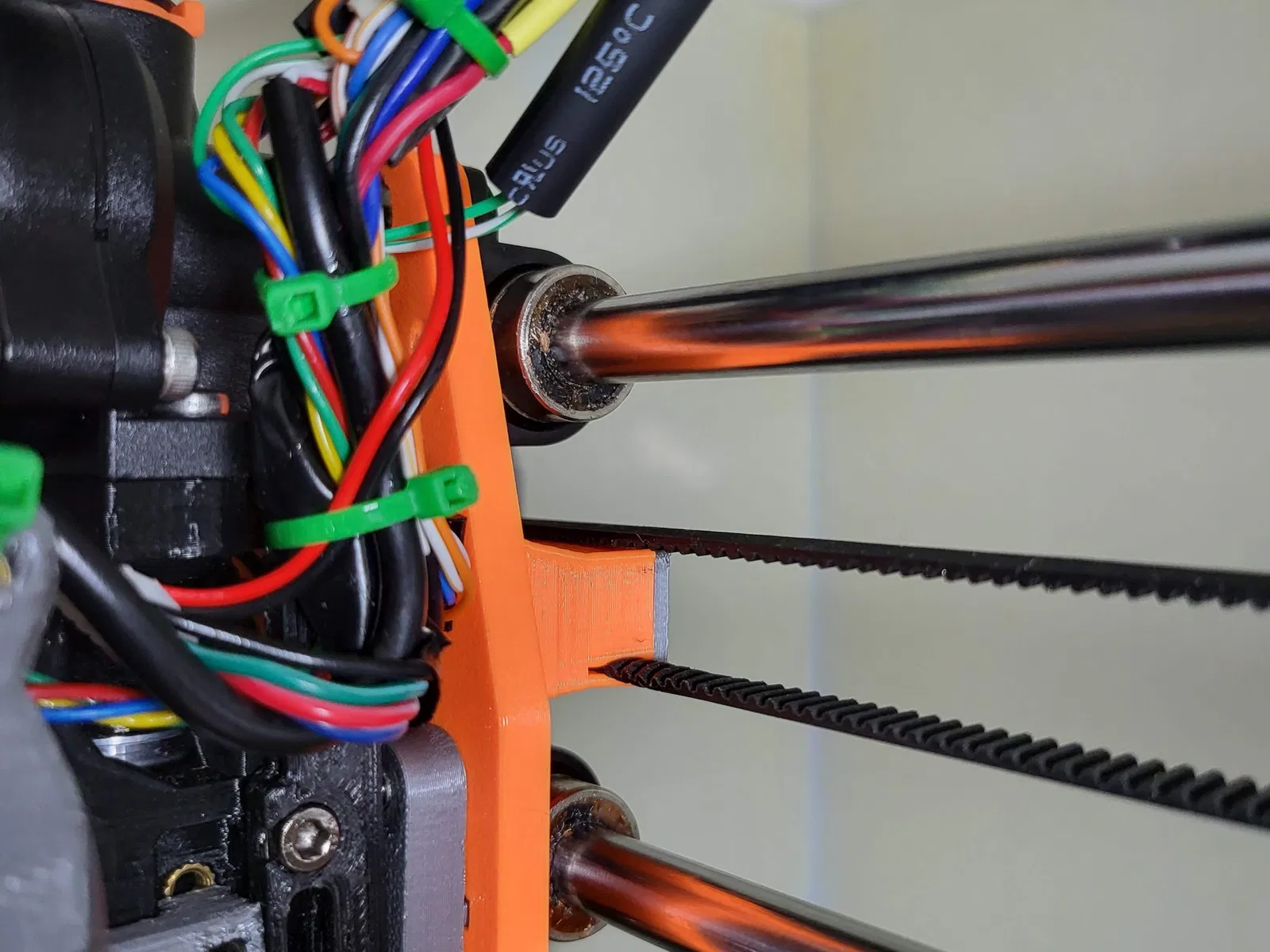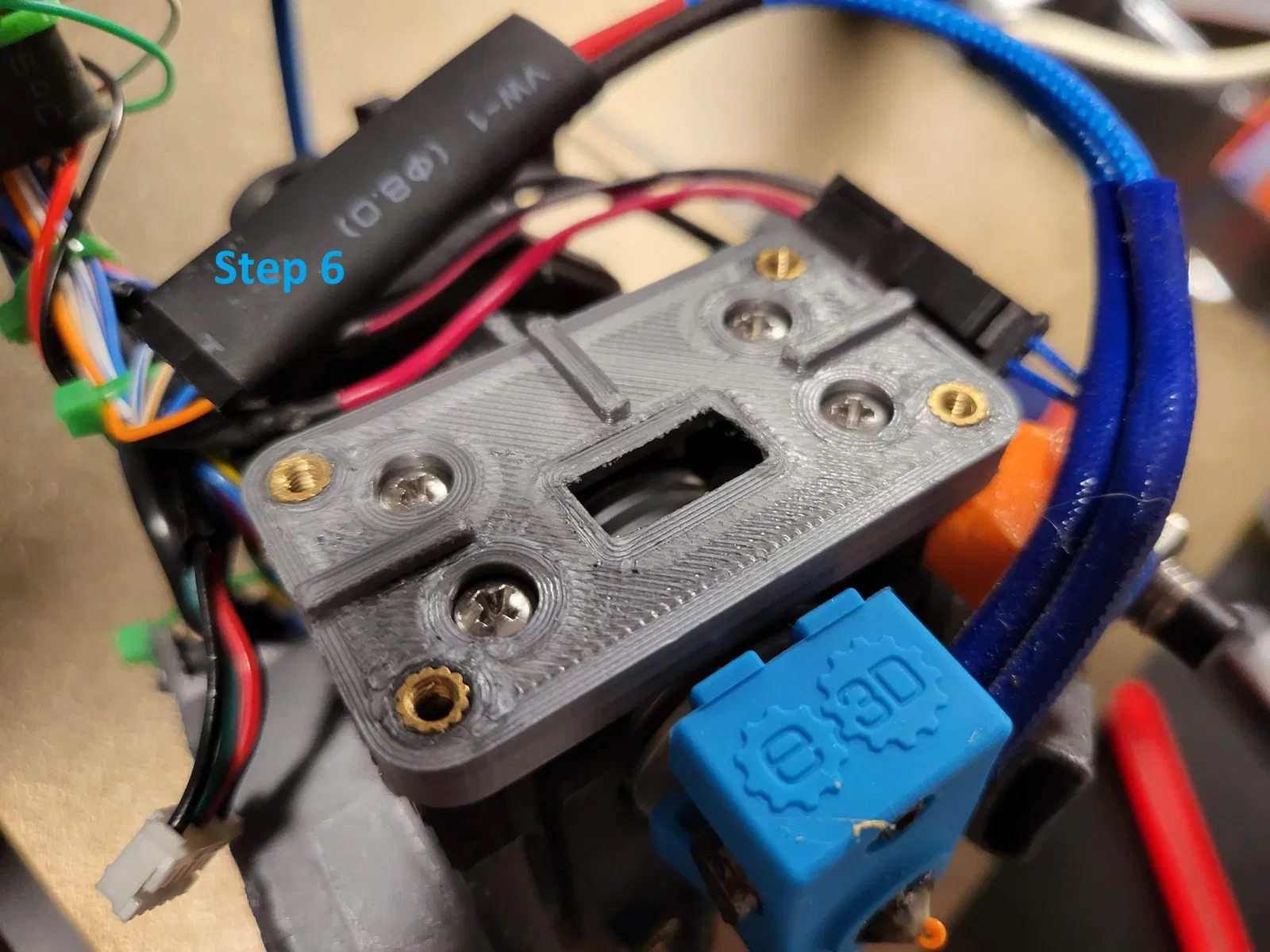 - Ép nóng 3x chèn ren M3 như được hiển thị trong tấm bộ chuyển đổi X-Gantry. 2x cho nắp dây đai, 1x cho vít khóa dây đai. (Cái thêm gần góc trên của tấm là tùy chọn)