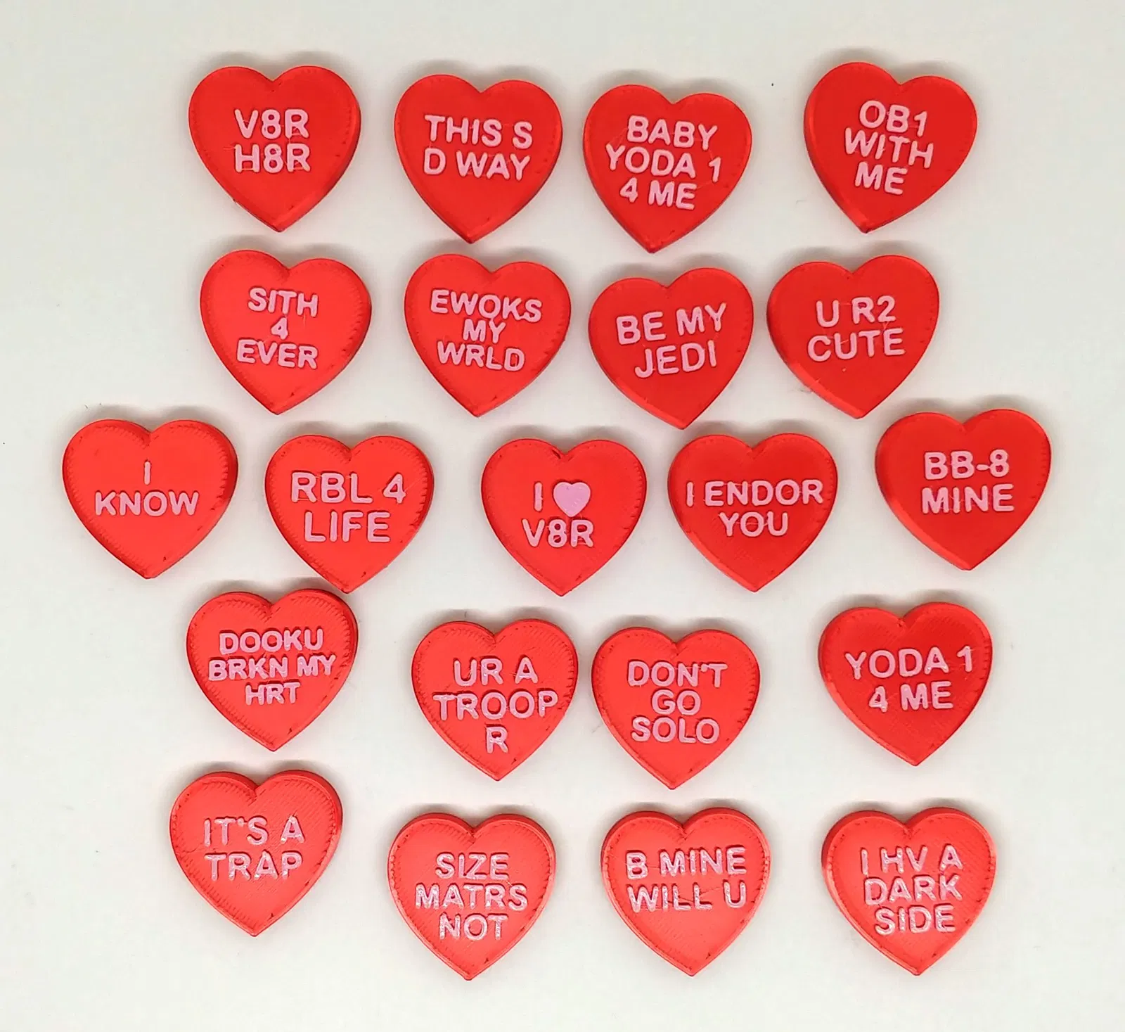 Chủ đề Ngày Lễ Tình Nhân Star Wars với những viên kẹo trò chuyện. Được lấy cảm hứng từ Chris Pirillo và cuộc trò chuyện trên buổi phát trực tiếp Twitch hàng đêm của anh ấy (6 giờ chiều giờ Thái Bình Dương). Những viên kẹo này chứa đựng những câu nói theo chủ đề Star Wars hoàn hảo cho người yêu Star Wars trong cuộc sống của bạn.