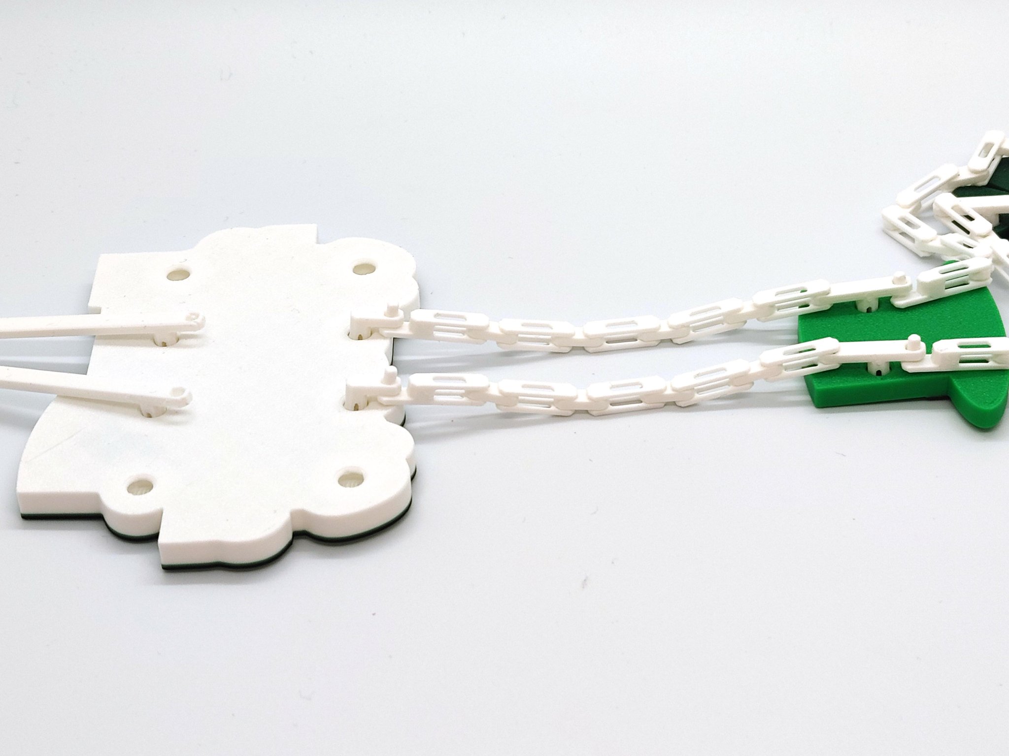 Sử dụng các đầu nối đi kèm, hoặc dây xích để tạo ra một dây trang trí có độ dài bất kỳ. Hoặc sử dụng mảnh treo và dây xích kết nối để tạo ra một đồ trang trí treo trên tường.