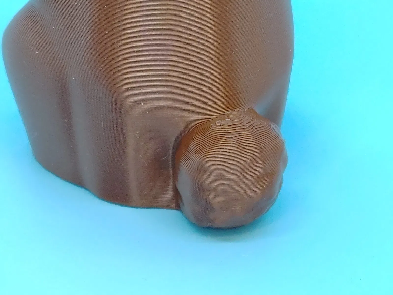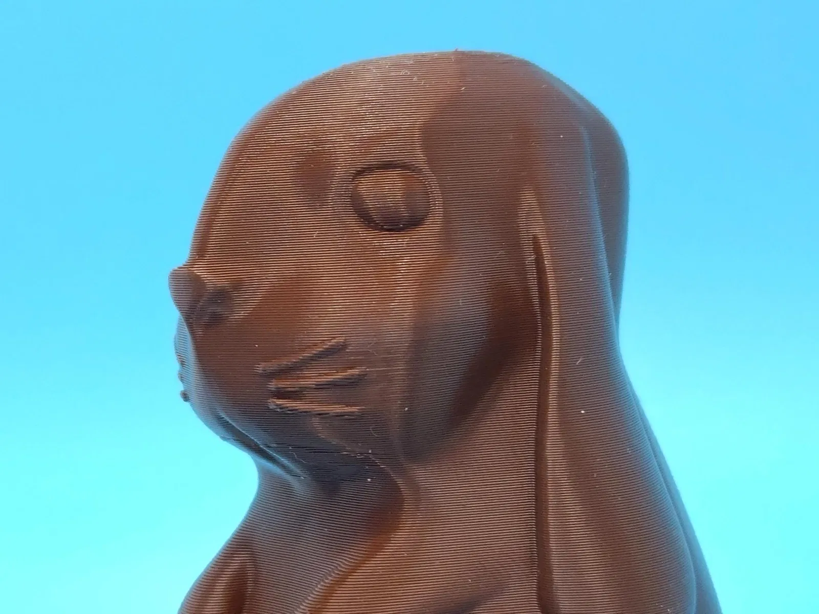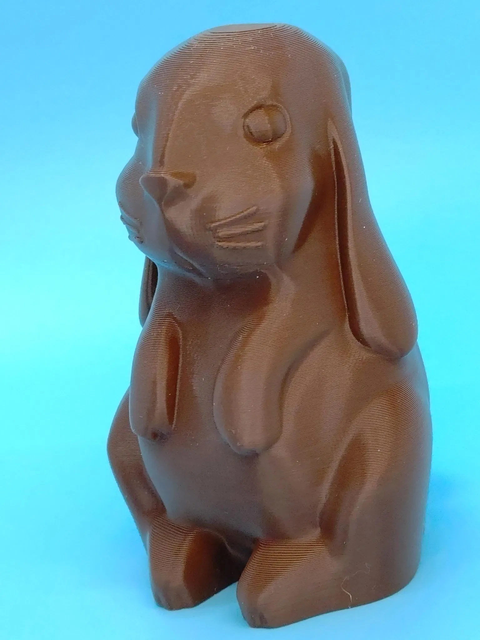 Mẫu được in mà không cần hỗ trợ ở độ cao lớp 0.2, với 3 viền & 15% độ đầy sáng. Được cắt bằng eSlicer 2.5.0 và in trên Prusa MINI+ (thỏ màu vàng) và Bambu Studio/in trên BambuLab x1-Carbon (thỏ màu nâu).