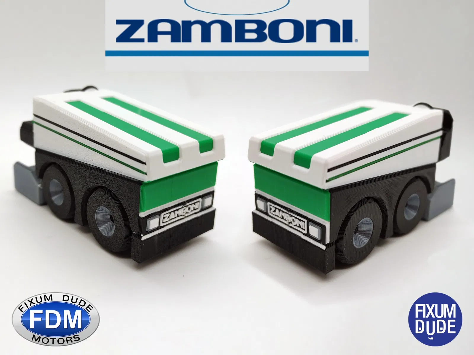 Giới thiệu máy làm phẳng băng theo phong cách Zamboni FDM (Fixum Dude Motors) in place. Bánh xe quay ngay từ mặt phẳng xây dựng. Phiên bản mới sơn Bambu AMS có sẵn (như được hiển thị trong ví dụ màu xanh/đen/trắng/bạc). In với màu sắc của đội bóng yêu thích của bạn! Bao gồm 2 khe ở mỗi bên được thiết kế để giữ filament 1.75mm để thêm các sọc trang trí tùy chọn với màu sắc của đội bóng yêu thích của bạn. (Cảm ơn @K2_Kevin vì ý tưởng) Tìm toàn bộ Bộ sưu tập Xe FDM tại đây: <https://www.f3d.vn/profile/fixumdude In nghiêng mà không cần hỗ trợ. Mẫu in bằng: (đa màu) Hatchbox Green, White, & Black, & Polymaker Silk Chrome PLA trên Bambu X1C với AMS, (xanh) PolyMaker Blue Silk PLA trên Prusa MK3S+ ở chế độ chất lượng .2LH, với 4 lớp trên/dưới, 3 đường viền và 10% độ đầy gyroid, (xanh/chrome) PolyMaker Dual Color Green/Chrome Silk PLA trên Prusa MK3S+ ở chế độ chất lượng .2LH, với 4 lớp trên/dưới, 3 đường viền và 10% độ đầy gyroid.