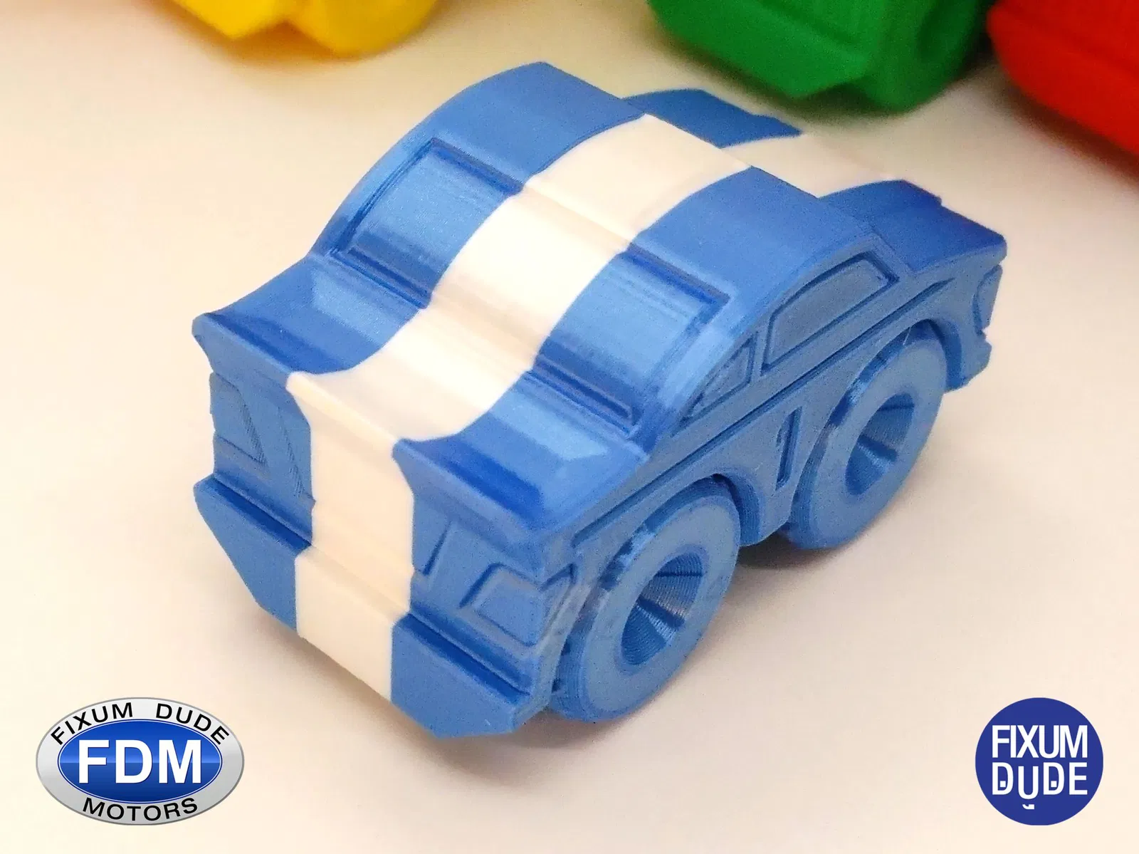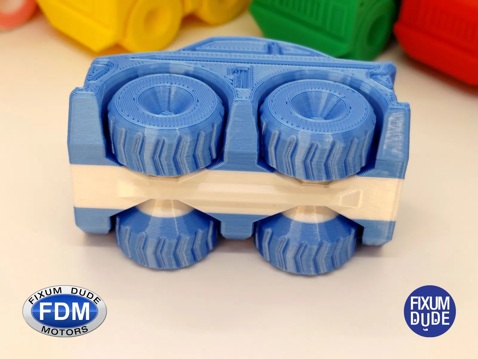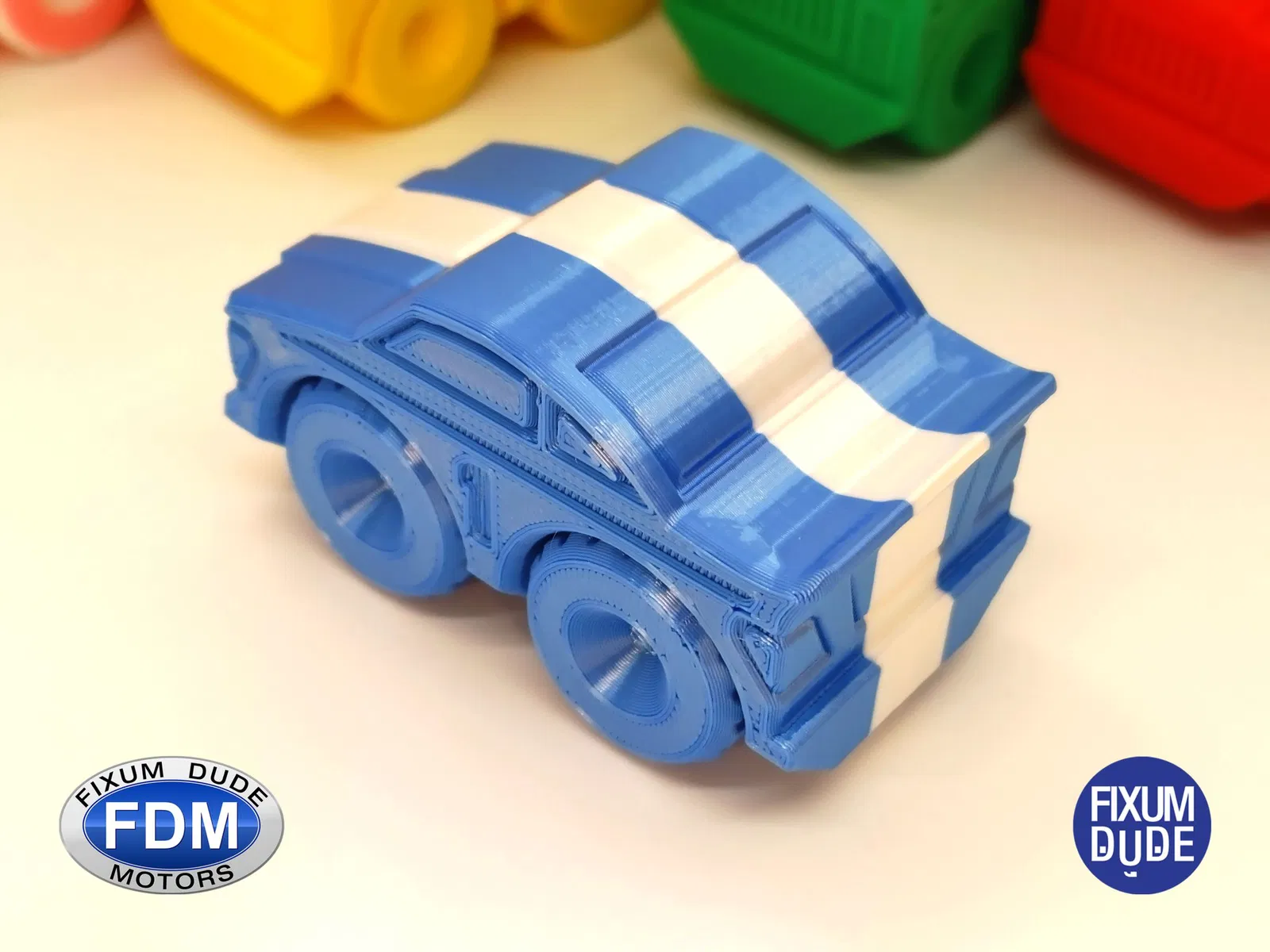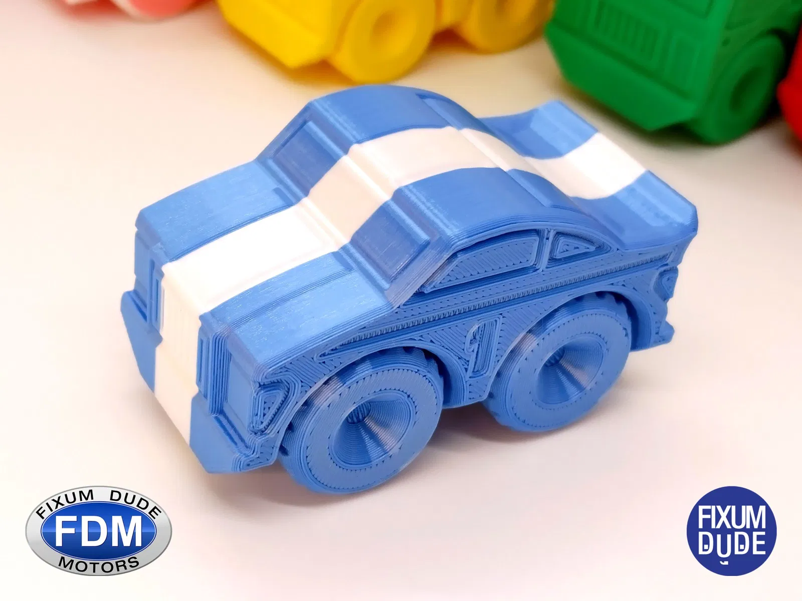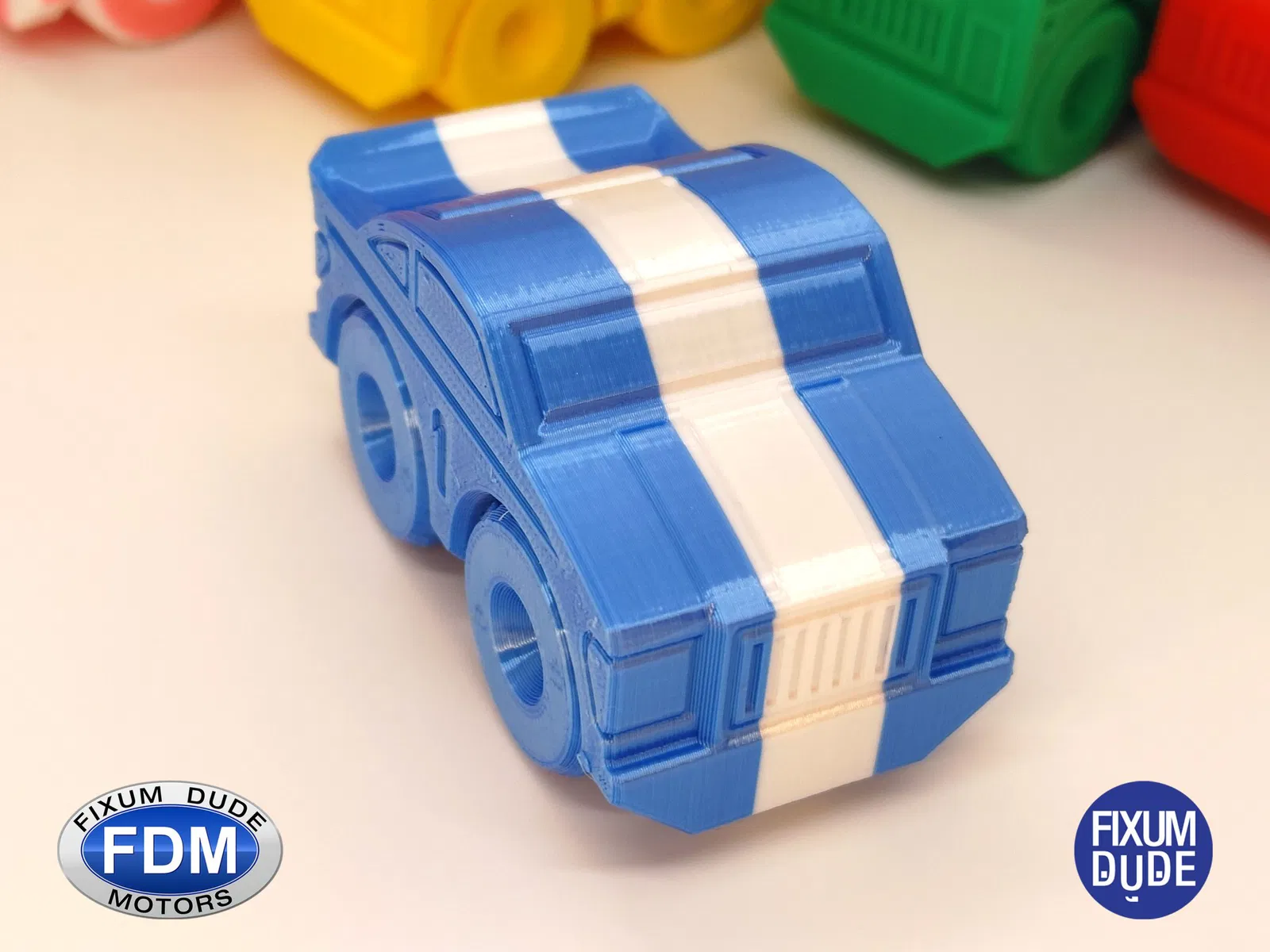 Giới thiệu chiếc xe đua in tại chỗ FDM (Fixum Dude Motors). Lấy cảm hứng từ chiếc xe cứu hỏa Thang Lật Clockspring3D (), nhưng hoàn toàn mới từ đầu đến chân, những chiếc xe mới này là sự bổ sung hoàn hảo cho xe cứu hỏa, hoặc như những món đồ chơi độc lập.