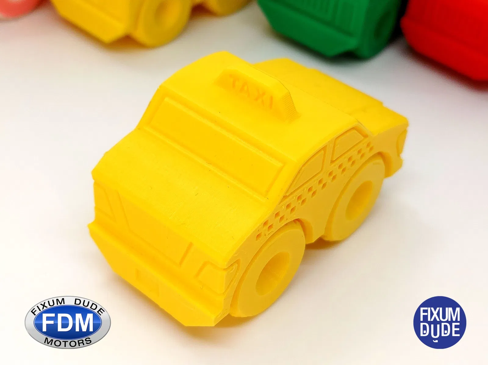 Giới thiệu về taxi in place FDM (Fixum Dude Motors). Lấy cảm hứng từ xe cứu hỏa Clockspring3D Flippy Ladder (), nhưng hoàn toàn mới từ đầu, những chiếc xe mới này là sự bổ sung hoàn hảo cho xe cứu hỏa, hoặc như những món đồ chơi độc lập. Tìm toàn bộ Bộ sưu tập Xe FDM tại đây: