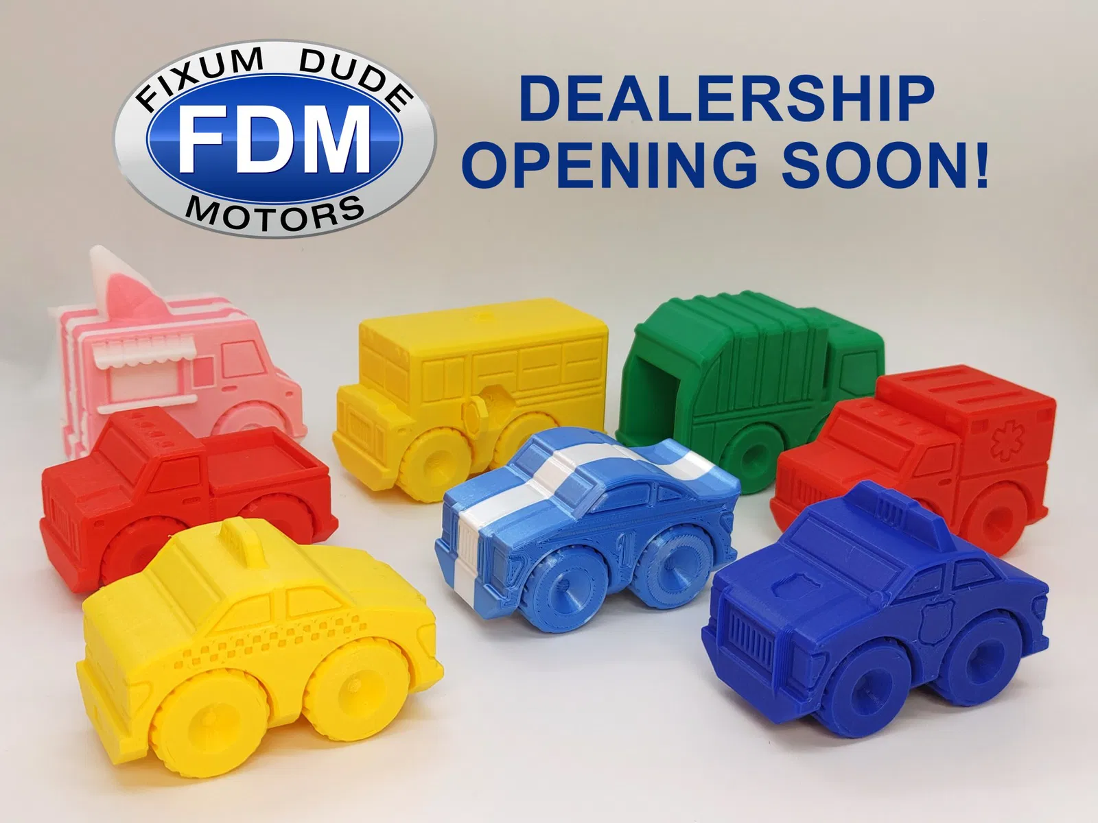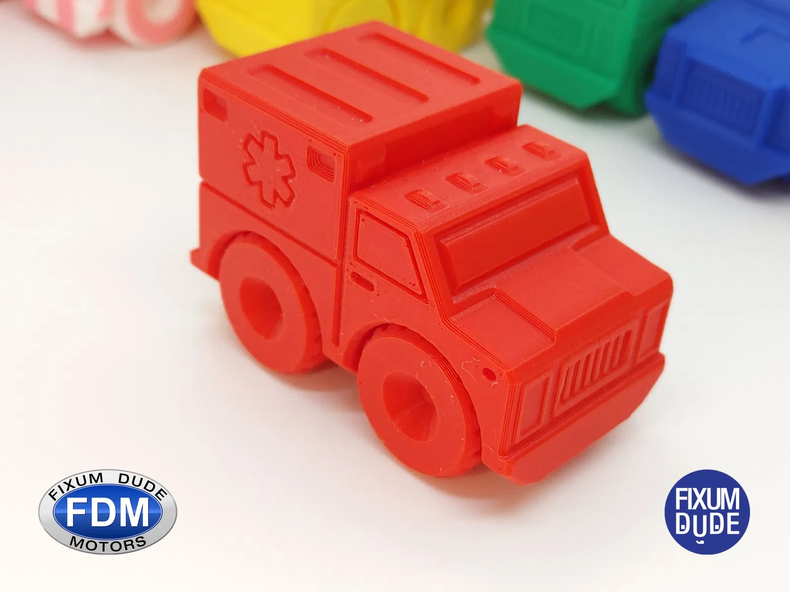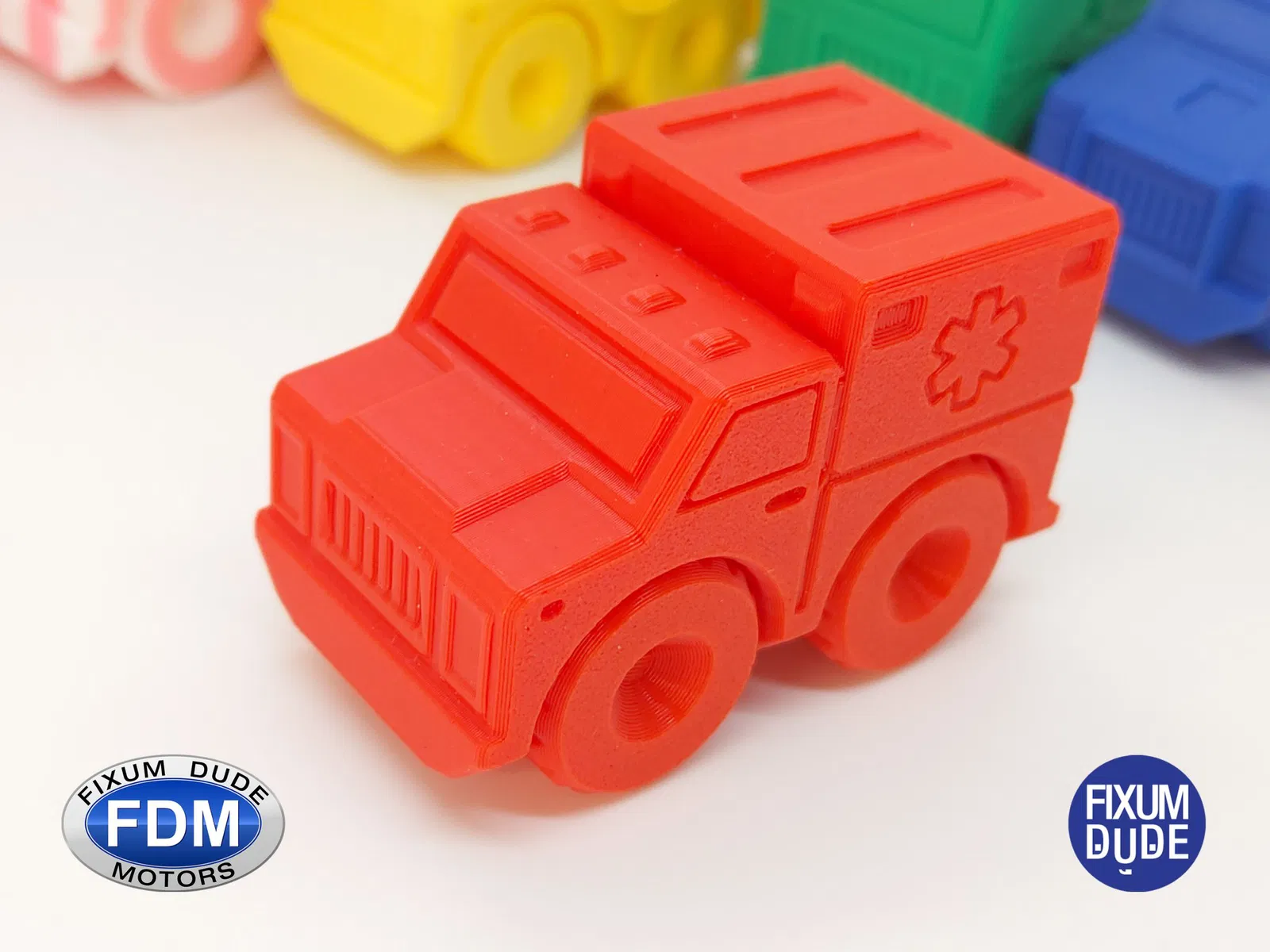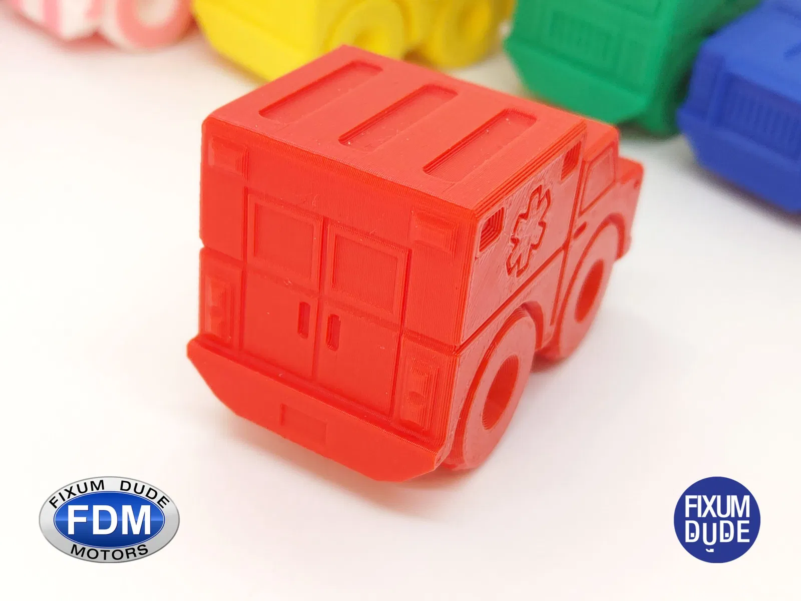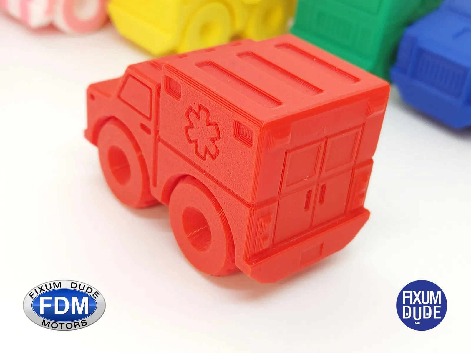 Giới thiệu xe cứu thương in place FDM (Fixum Dude Motors). Lấy cảm hứng từ xe cứu hỏa Flippy Ladder của Clockspring3D (), nhưng hoàn toàn mới từ đầu đến cuối, những chiếc xe mới này là sự bổ sung hoàn hảo cho xe cứu hỏa, hoặc như những món đồ chơi độc lập.