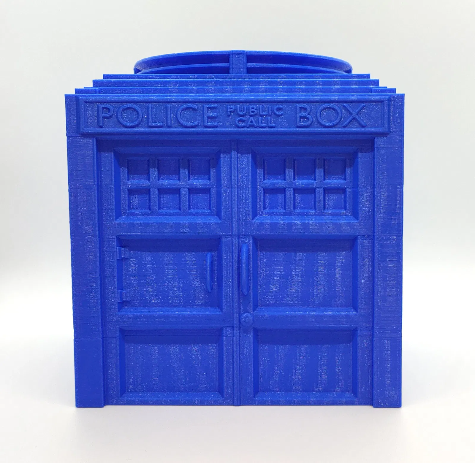 Và nếu bạn có thể in cao 300mm, có một phiên bản có thể chứa 2 hộp (1 và 1 dự phòng) rất gần với tỷ lệ của Tardis gốc. Phiên bản 2 hộp được in bởi Crussty3D (In thực tế) như một mảnh trên Prusa XL của anh ấy.