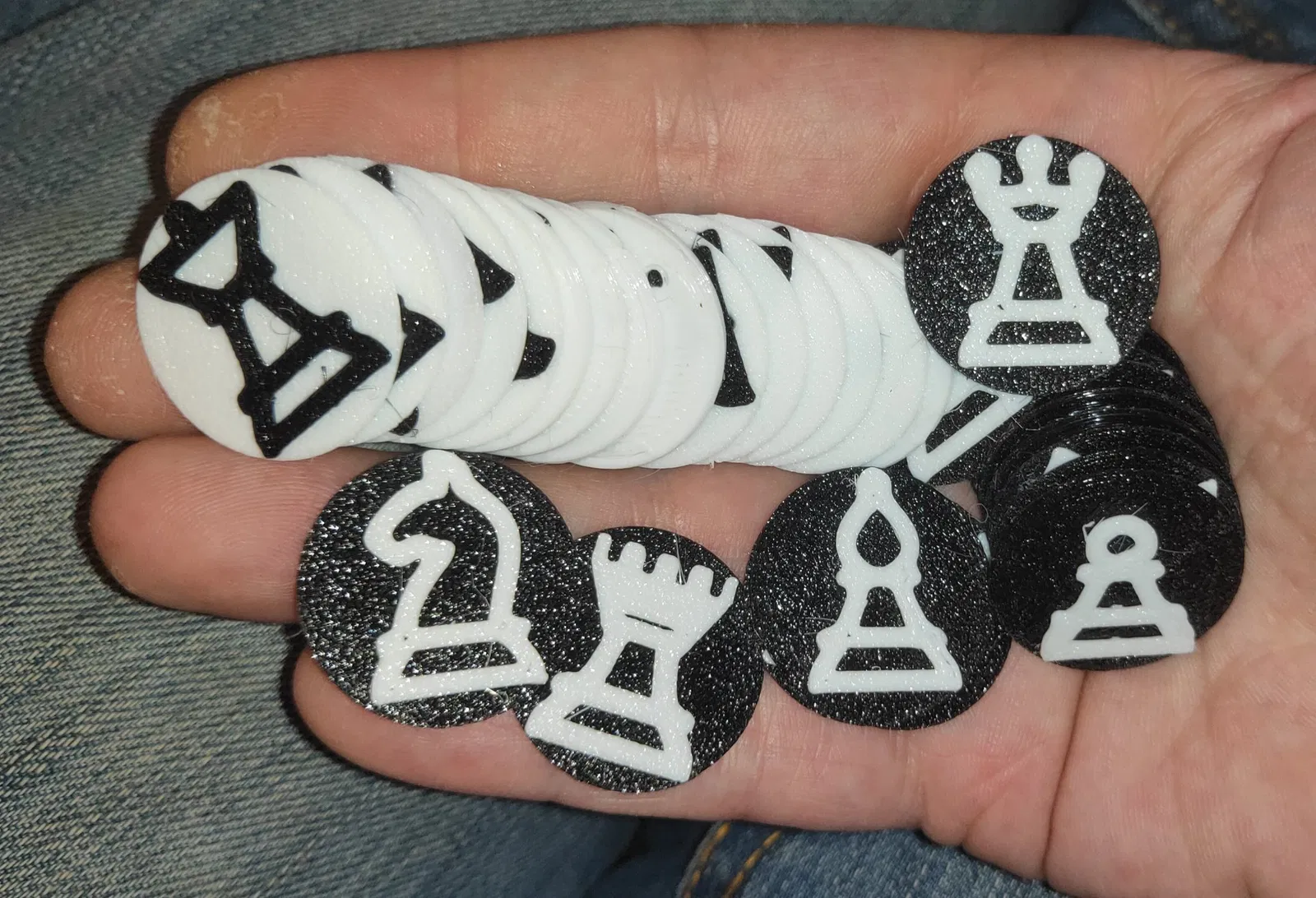 Bất kỳ loại filament nào cũng được. Tốt nhất là sử dụng các phần thừa. Bộ hình đầy đủ cho một người chơi chỉ 2.3g. Các đế chỉ nặng 8.0g cho tất cả các hình cho một người chơi. Tổng cộng chưa đến 21g cho cả hai người chơi!