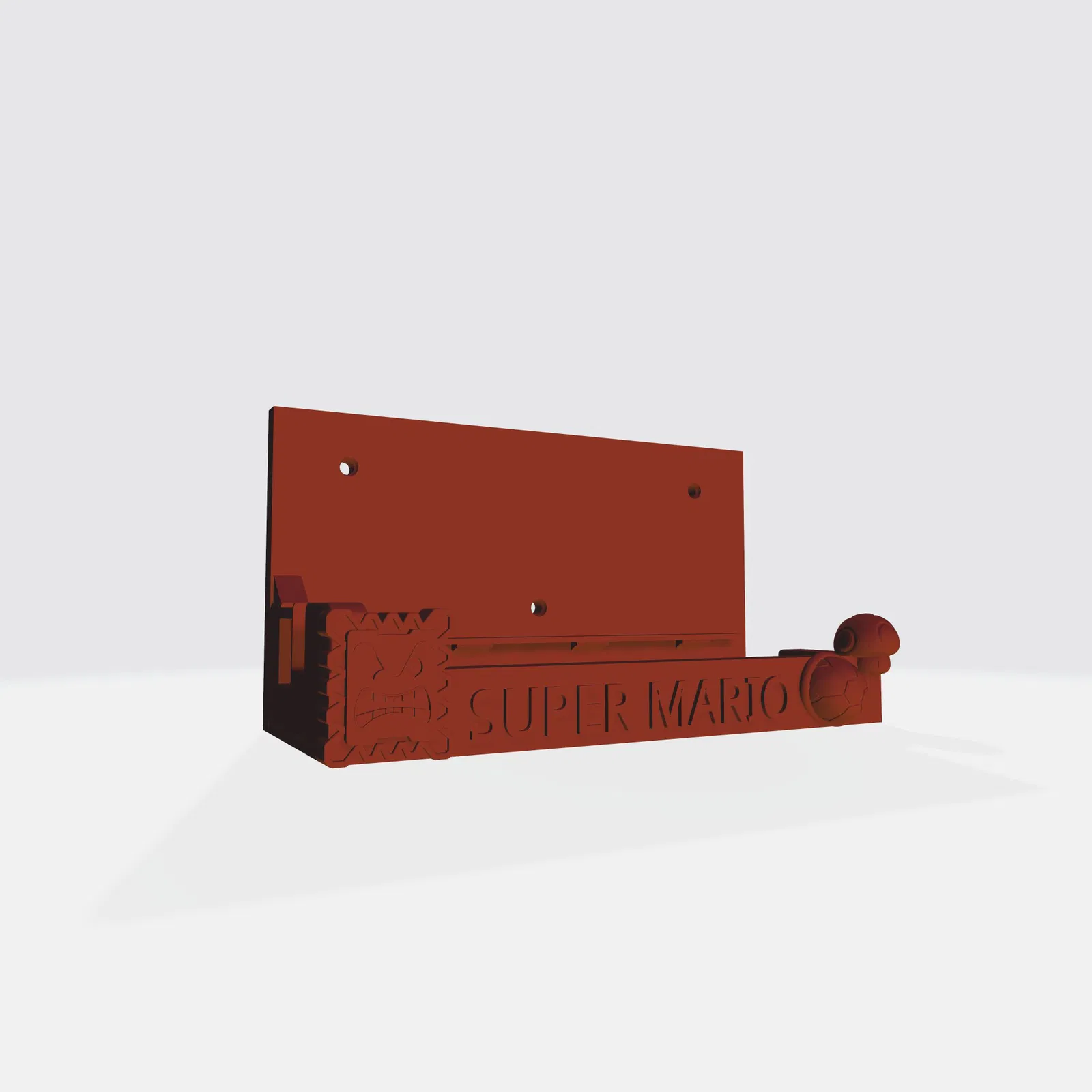 Giá treo tường Switch lấy cảm hứng từ Super Mario do người hâm mộ làm. Dễ dàng in với tối thiểu hoặc không cần hỗ trợ tùy thuộc vào cài đặt, chỉ cần hạ sàn xuống mặt phẳng xây dựng. Dễ dàng lắp đặt với 3 vít khô, không cần tìm thanh đỡ, chỉ cần vặn chặt nhưng không quá chặt để giữ tốt. Tôi đã có những đơn vị tương tự trên tường của mình gần 3 năm nay.