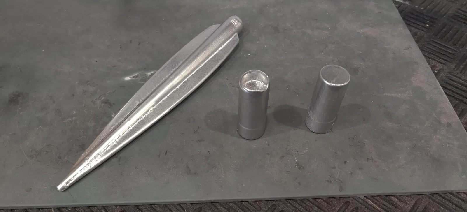 Đây là một ngọn giáo tôi làm cho con tôi. Nó được thiết kế cho một cực có đường kính 17mm, nhưng nó có thể được nâng cấp.