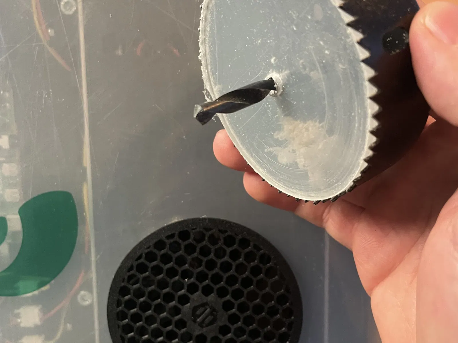 Tôi đã sử dụng một cái khoan để cắt một lỗ trên tấm đáy phía trên quạt, bạn có thể sử dụng lưới quạt để làm cho nó trông đẹp :)