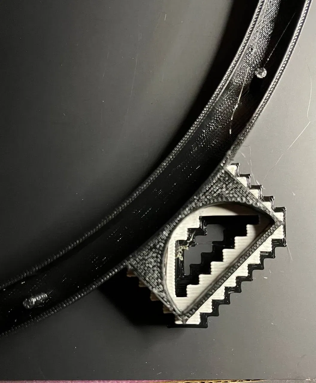 Lượng filament tiêu thụ là thấp, vòng chỉ nặng 46g. Làm lớp ngăn cách, tôi đã sử dụng PLA cho in PETG. Ai muốn in bằng PLA thì dùng PETG làm lớp ngăn cách. Như vậy, vòng có thể dễ dàng được gỡ bỏ khỏi hỗ trợ (Khoảng cách cắt trên = 0).