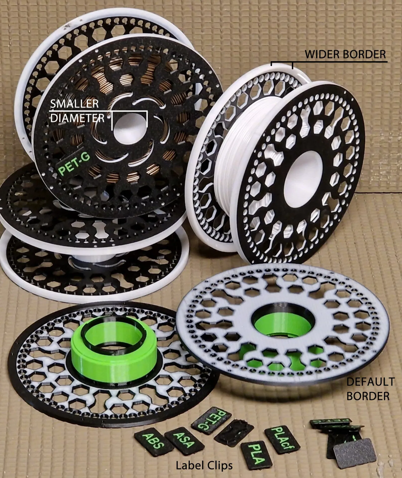 Đối với Bambu của tôi (AMS, không có Hydra) X1C, thật tuyệt khi có một cuộn với đường kính trục nhỏ hơn. Bằng cách này, 1kg filament vừa vặn trên cuộn này mà không bị trầy xước ở các bộ nạp.