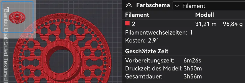 Tôi luôn là Mr. Mac Cheap khi nói đến việc in các mô hình trên các trang 3D. Nó luôn rất lãng phí với filament và tôi thích làm một bản remake hoặc mô hình của riêng mình, mà cuối cùng cũng ổn định như nhau nhưng nhẹ hơn nhiều. Cũng như ở đây, cuộn rỗng này. Không chỉ tiêu thụ filament thấp hơn, mà thời gian in cũng được giảm, điều mà tôi cá nhân thích. Đó là sự khác biệt thực sự của bản remake này.