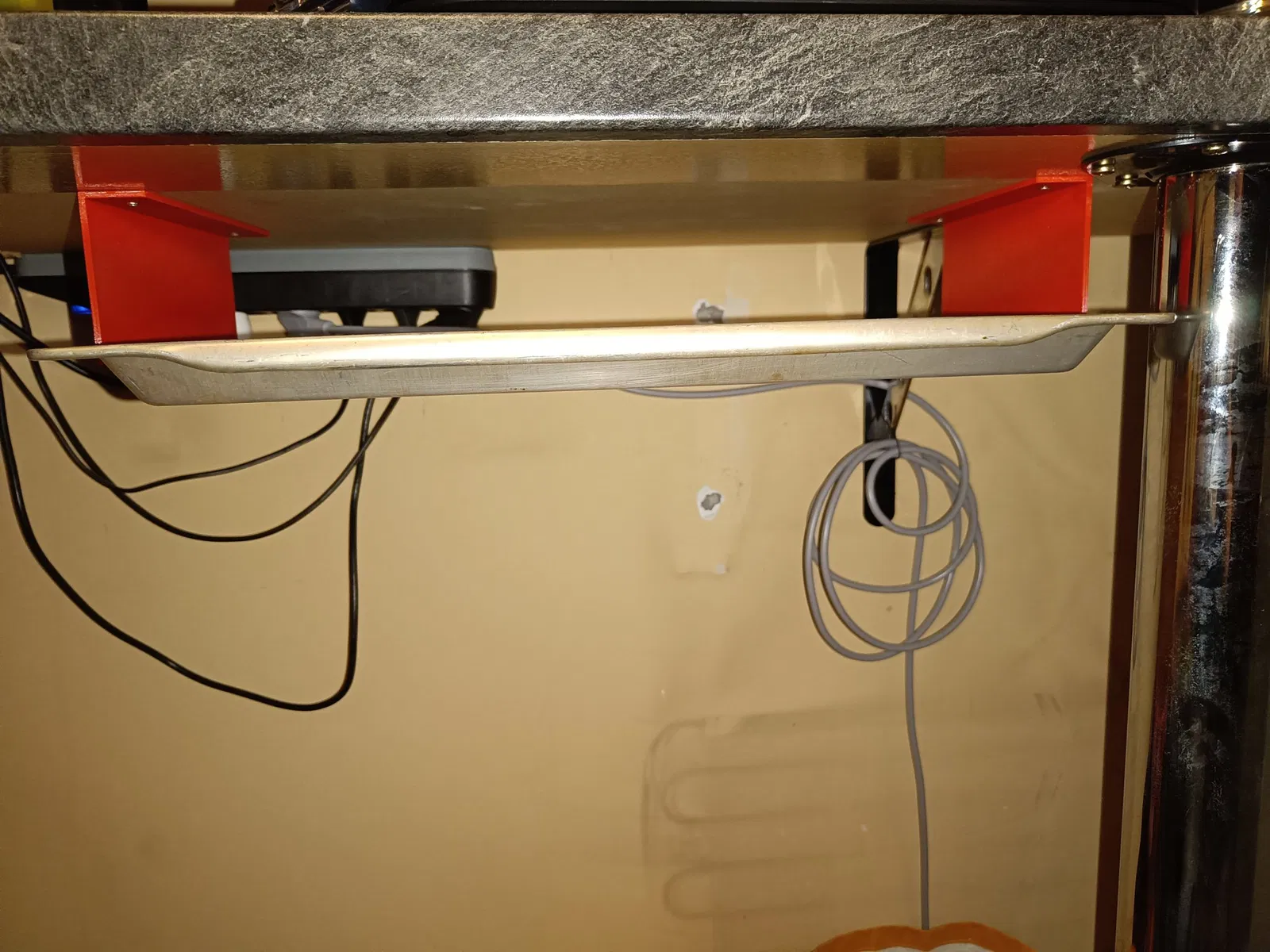 Chỉnh sửa: Trong thời gian chờ đợi, tôi đã in thêm 2 cái nữa để có thể trượt khay ra mà không bị nghiêng.