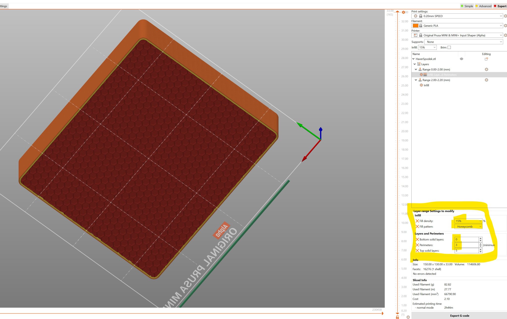 Cả hai phần đều có sẵn trong hai phiên bản, với đáy mỏng (1.2 mm) và đáy dày (3.2 mm). Phiên bản đáy dày được thiết kế để in với lớp lưới tổ ong mà không có lớp đáy. Một ảnh chụp màn hình của thiết lập nằm trong số các hình ảnh trong thư viện. Nó cũng có trong các tệp 3mf.