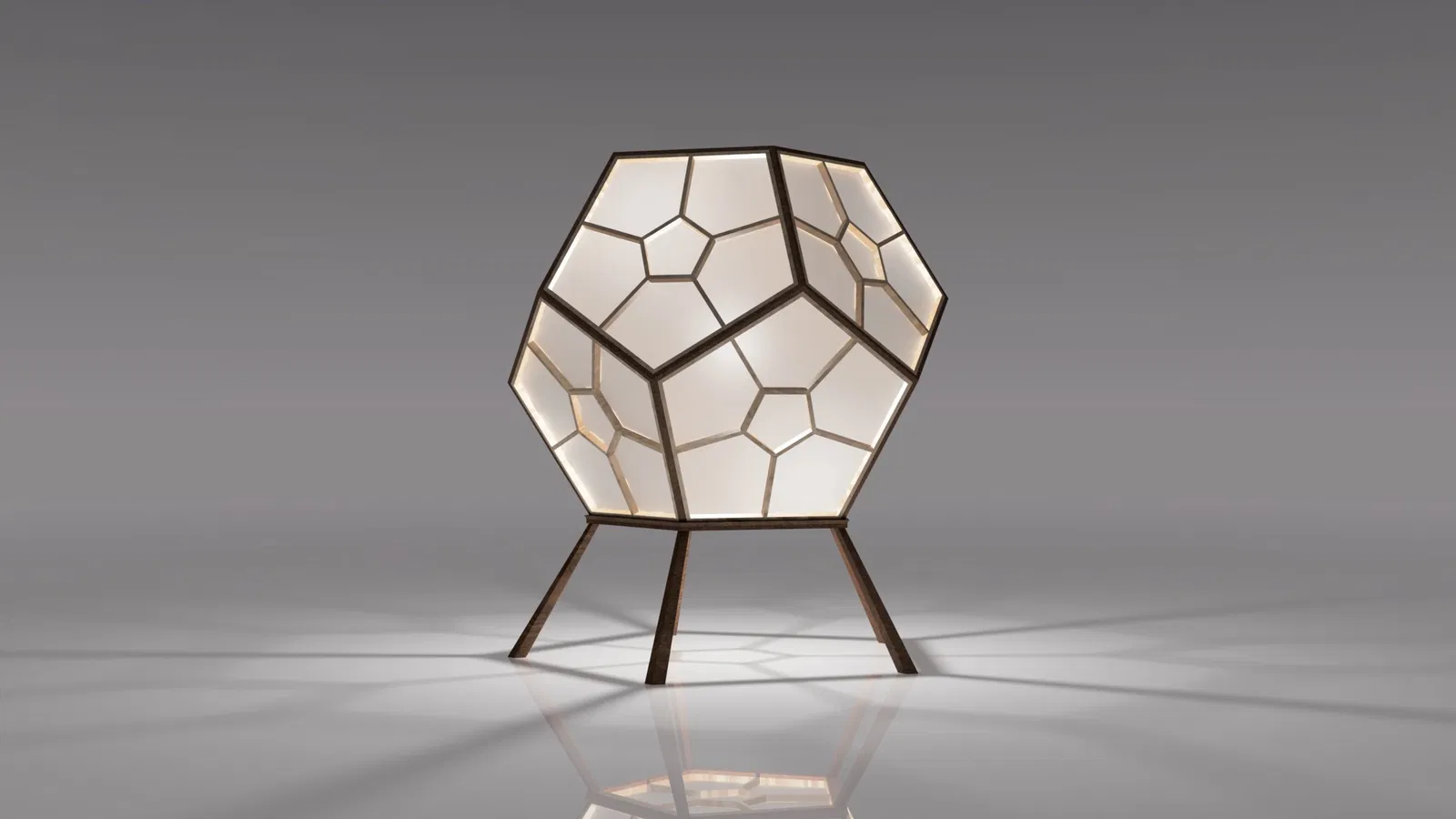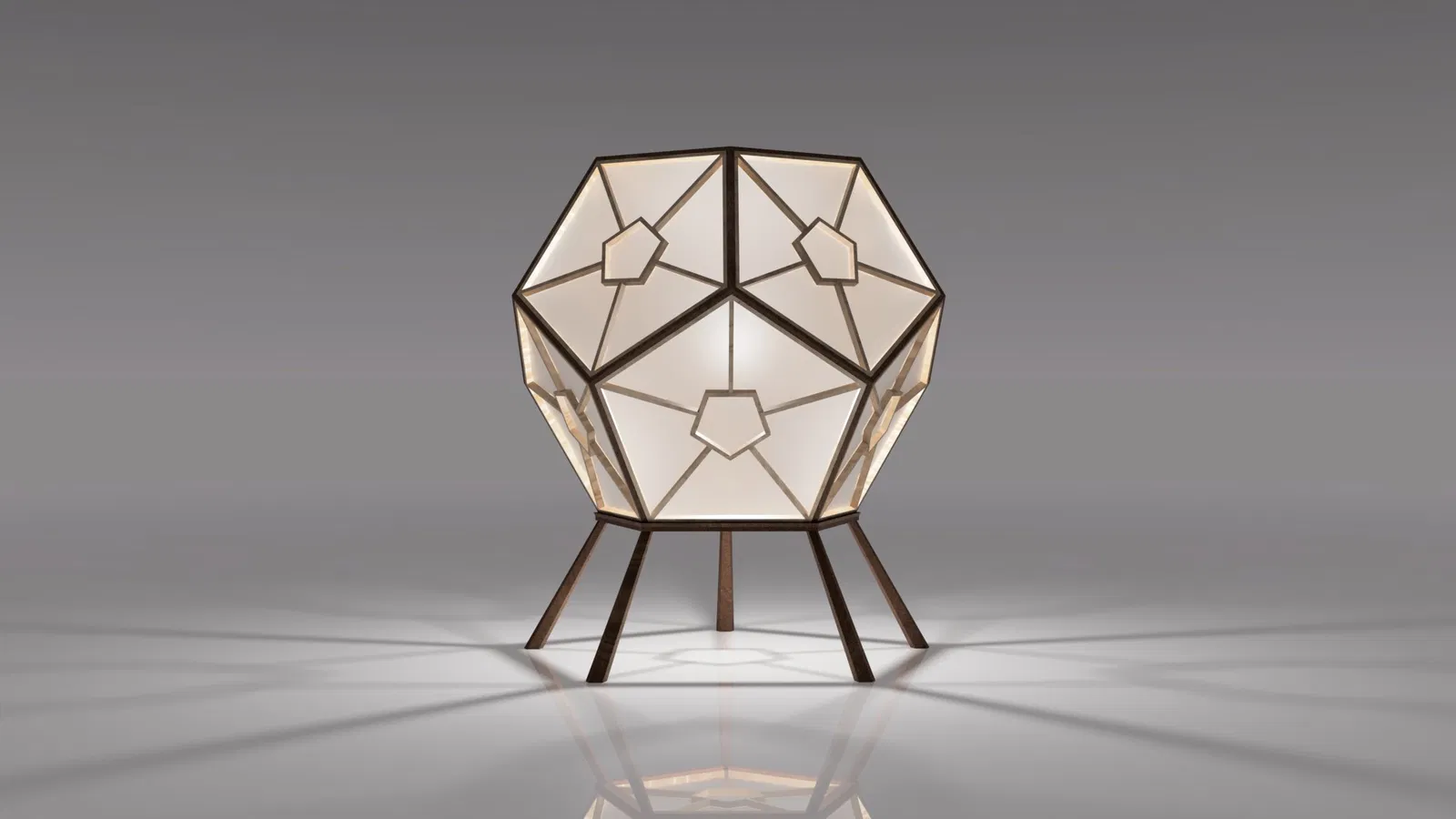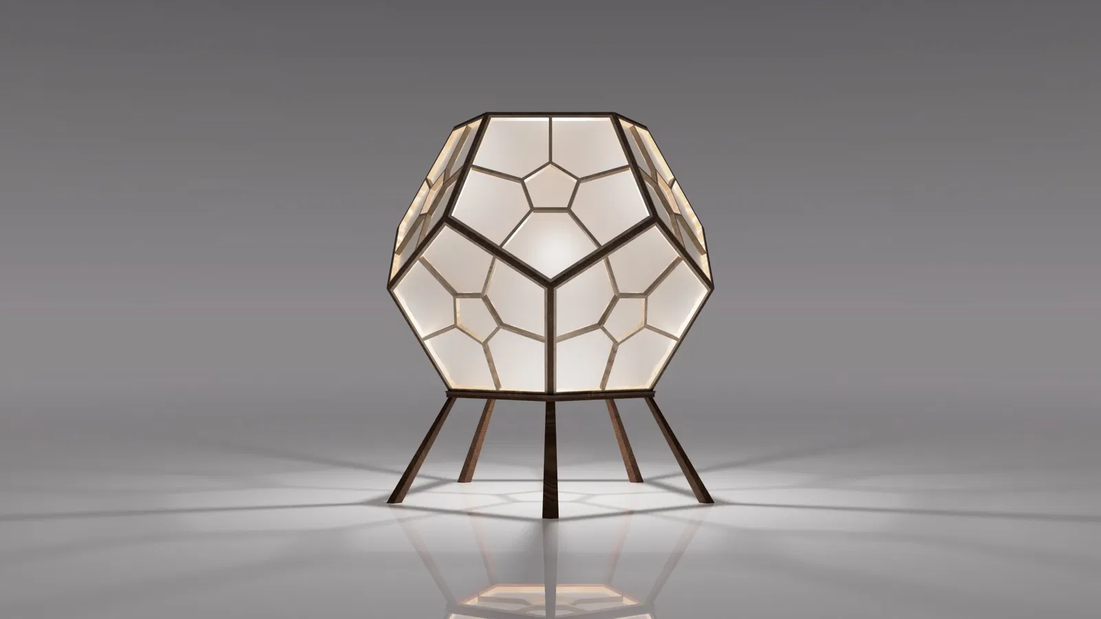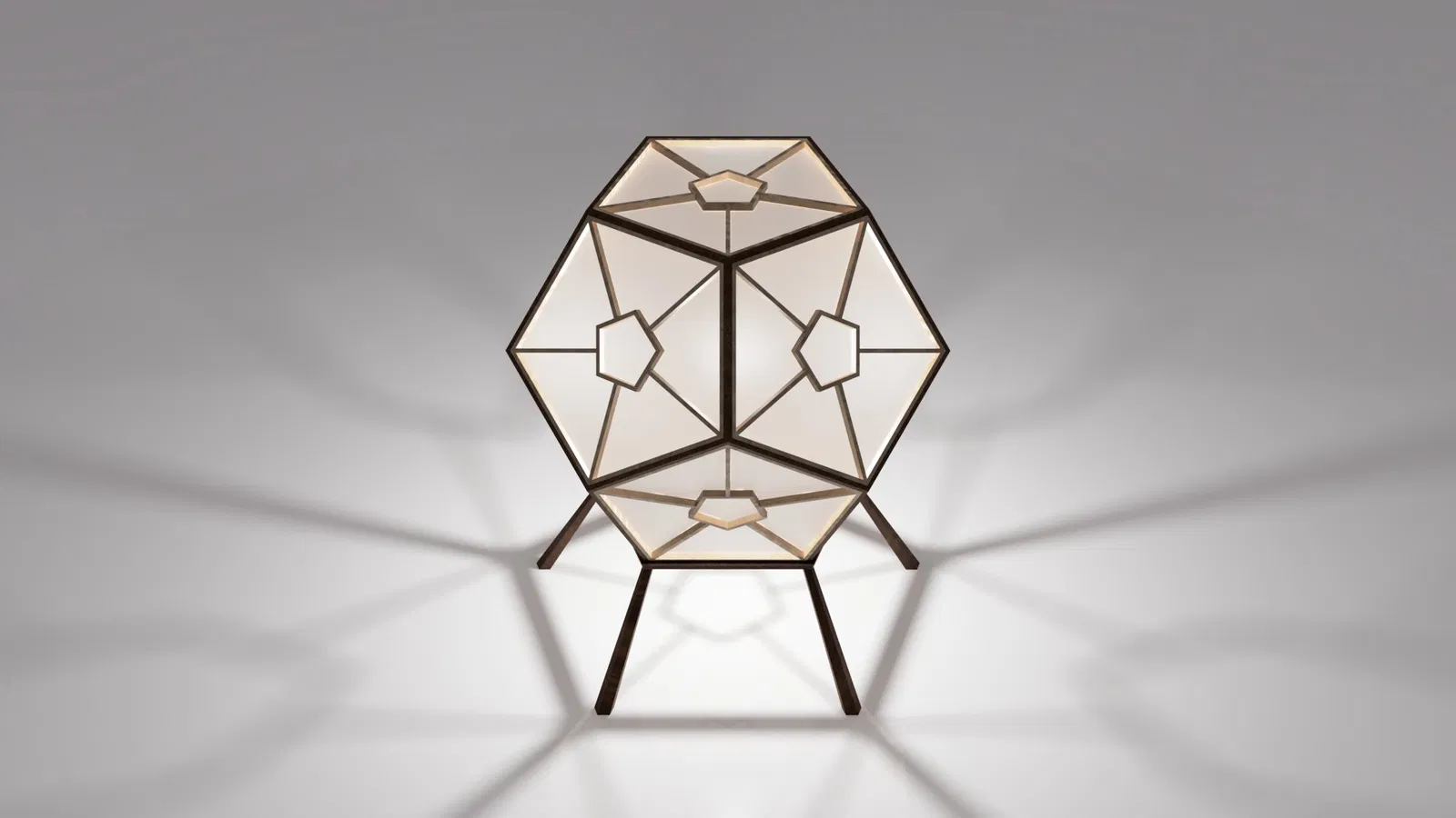 Đèn Dodecahedron với thiết kế hình học và kỹ thuật Kumiko