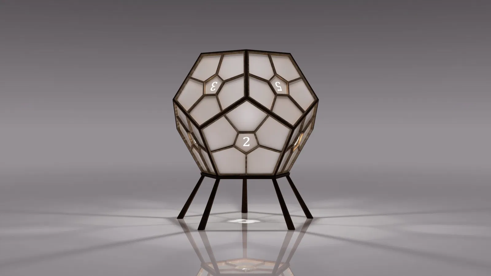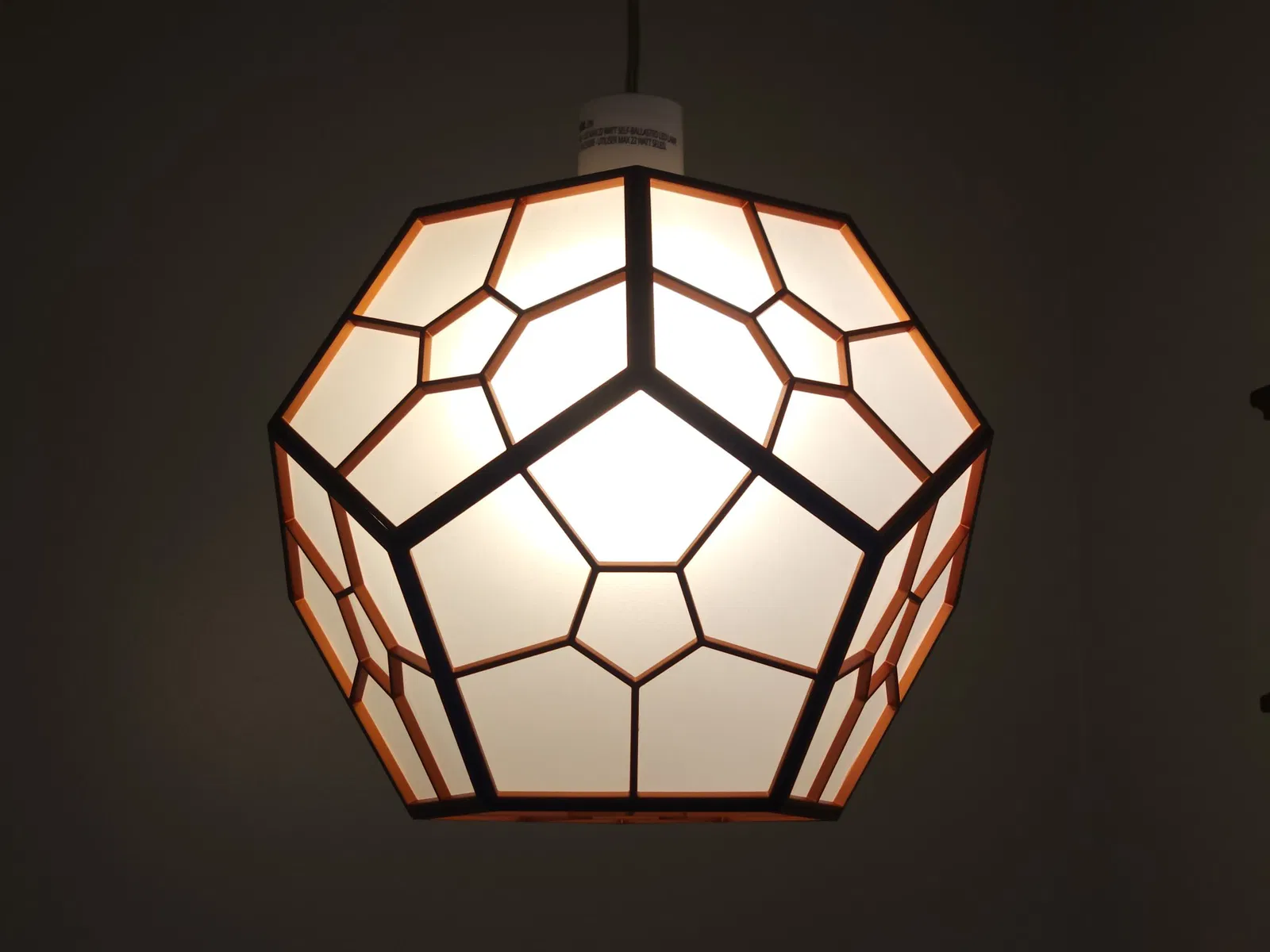 Để tiếp tục với đèn hình tứ diện đã được thiết kế trước đó, tôi đã thiết kế đèn hình mười hai mặt. Tôi cũng thấy đèn hình tứ diện hơi nhỏ, vì vậy lần này tôi muốn một cái gì đó lớn hơn. Đèn này cao 360mm (≈ 14 inch) và rộng cũng như sâu 320mm (≈ 12.6 inch).