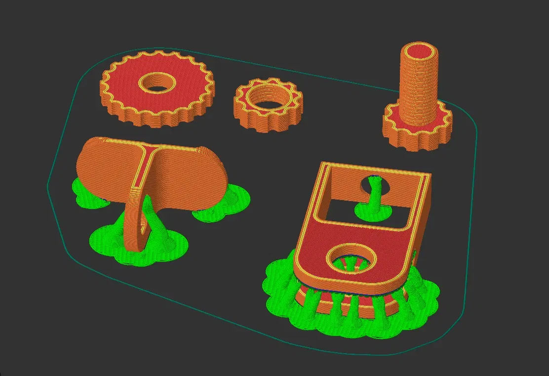 Tôi đề xuất in các giá đỡ theo hướng như trong hình (để đảm bảo độ bền của các mảnh).