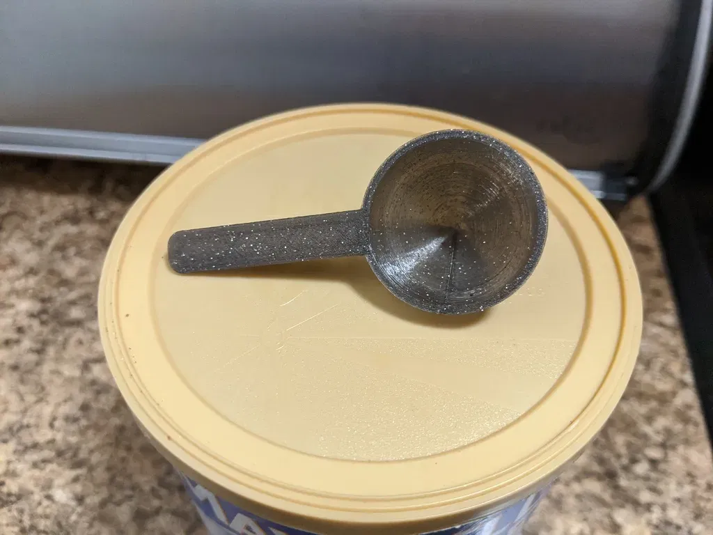 Thiết kế tốt nhất cho một muỗng cà phê. Nó dễ dàng vừa vặn trong một hộp cà phê. Nó không có góc nào lớn hơn 45 độ, vì vậy không có phần nhô ra hoặc cần hỗ trợ. In với ít nhựa.