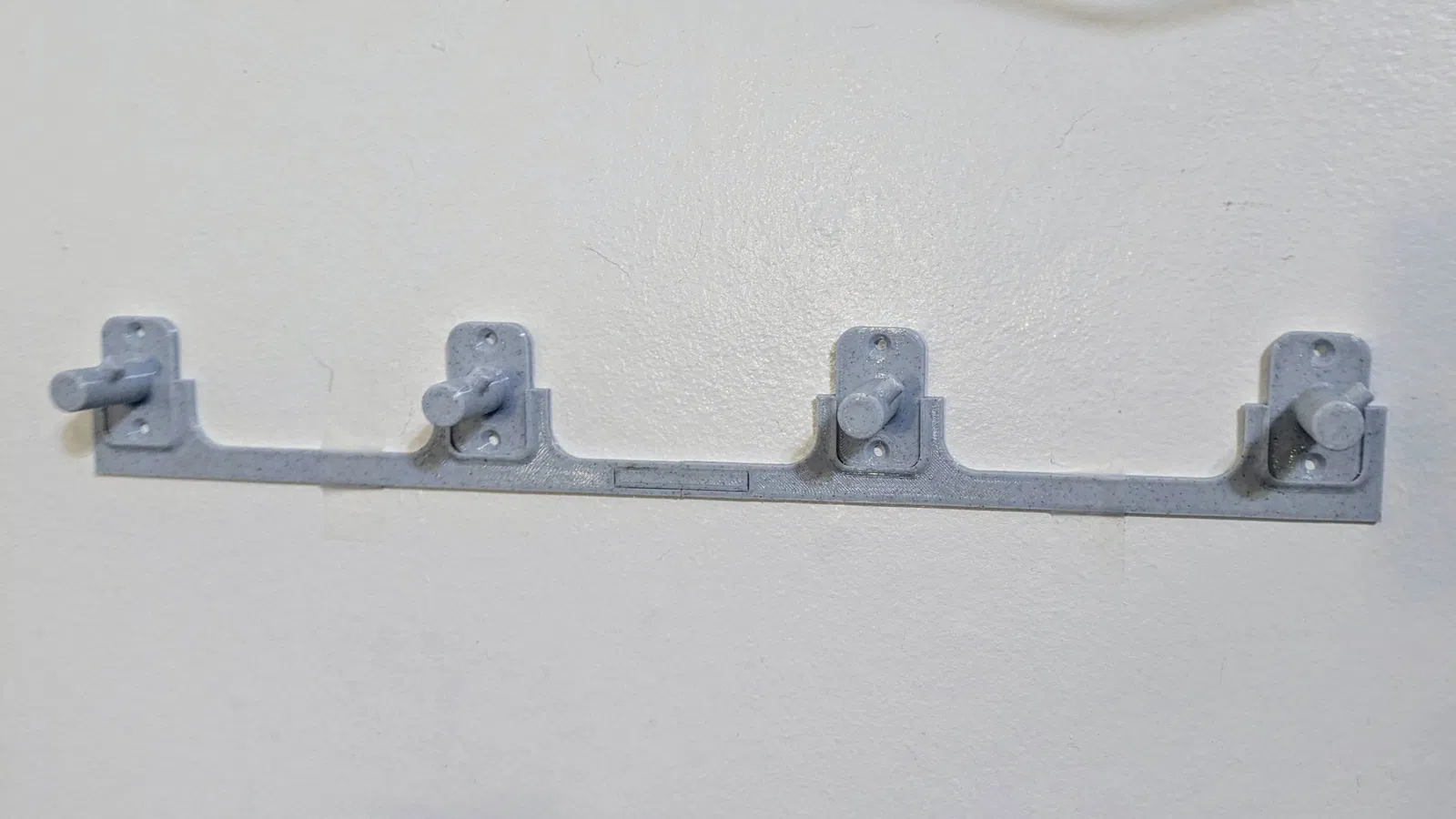 Để sử dụng công cụ lắp đặt: In tất cả 3 mảnh, dán siêu keo 3 mảnh lại với nhau, sau đó dán công cụ vào mặt dưới của tủ nơi bạn muốn lắp đặt các giá treo. Khoảng trống cũng sẽ giữ các giá treo của bạn tại chỗ trong khi bạn lắp đặt chúng.