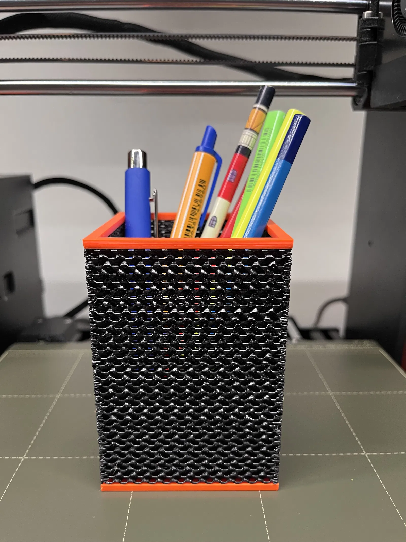 Cái chân cắm bút này nhìn hay ghê, để trên bàn làm việc là hết sảy. In không cần MMU đâu nha. Có cài đặt slicer chi tiết cho mọi người nè, có thể in nhiều màu hoặc 1 màu đều được.