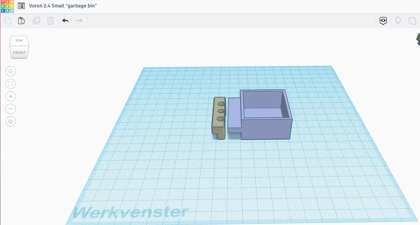 Voron 2.4 nhỏ 'thùng rác' cho các sọc thanh lọc Voron nhỏ. Được thực hiện trong Tinkercad.
