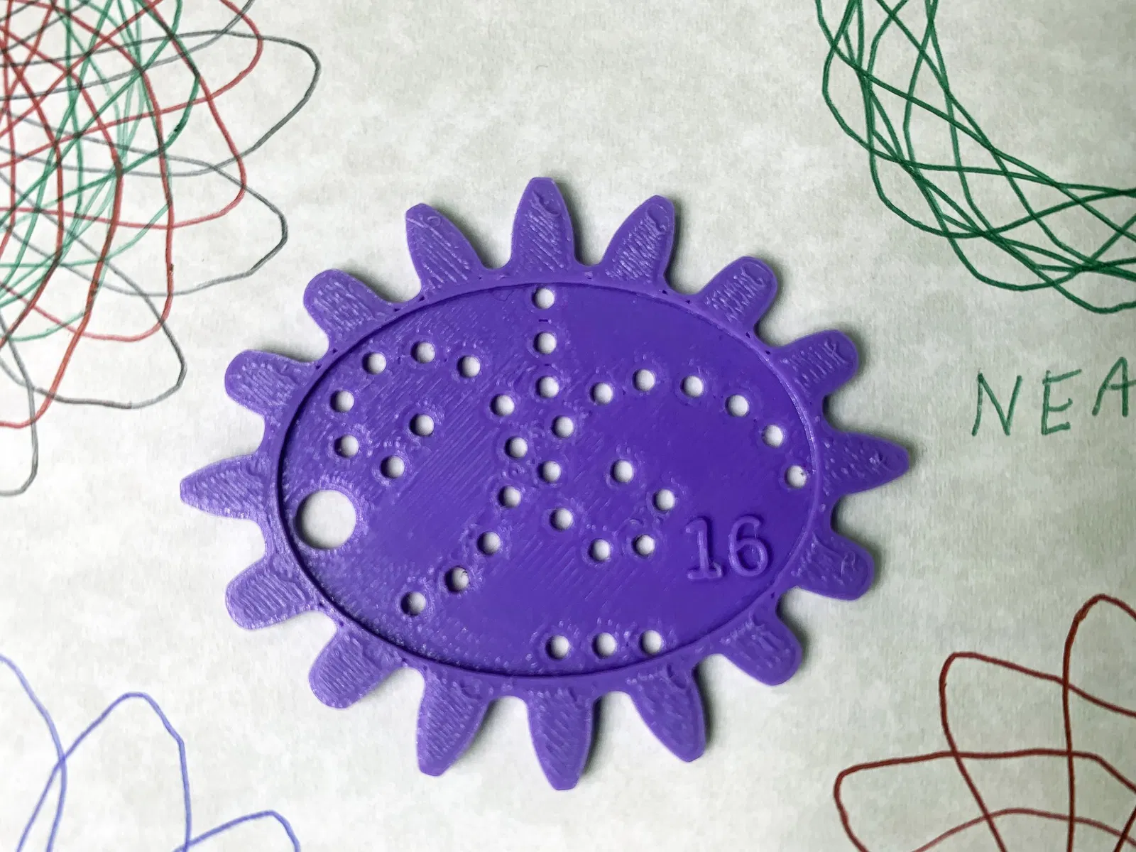 Đây là một bánh răng Oval 16 răng cho khung Spirograph của 3Domas... và nên phù hợp với các biến thể. Thật là một thách thức khi thêm một hình oval vào một vòng với những răng lớn như vậy, nhưng tôi đã làm cho nó chuyển động mượt mà mà không bị vướng và nó hoạt động khá tốt. Nhìn vào bàn làm việc của tôi.. đây là phiên bản 4 vì tôi đã phải thực hiện một số điều chỉnh độc đáo cho hầu hết các răng. Hình oval trong một vòng tròn sẽ cho bạn những mặt phẳng trước khi vào khúc cua và thêm những cú swing lớn hơn khi tâm của bạn gần hơn và xa hơn từ cạnh, bất kể vị trí nào bạn chọn. Tôi thực sự thích bộ khung spirograph này. Nó dễ dàng xử lý và là một món quà tuyệt vời. Gần đây tôi đã bắt đầu in một lớp TPU ở dưới cùng để giảm trượt, điều này làm cho nó thậm chí còn tốt hơn. Nhận vòng snap và bánh răng có số ở đây. ... và tất nhiên, bộ lắp ráp vòng khung và bánh răng nguyên bản tròn có thể được tìm thấy