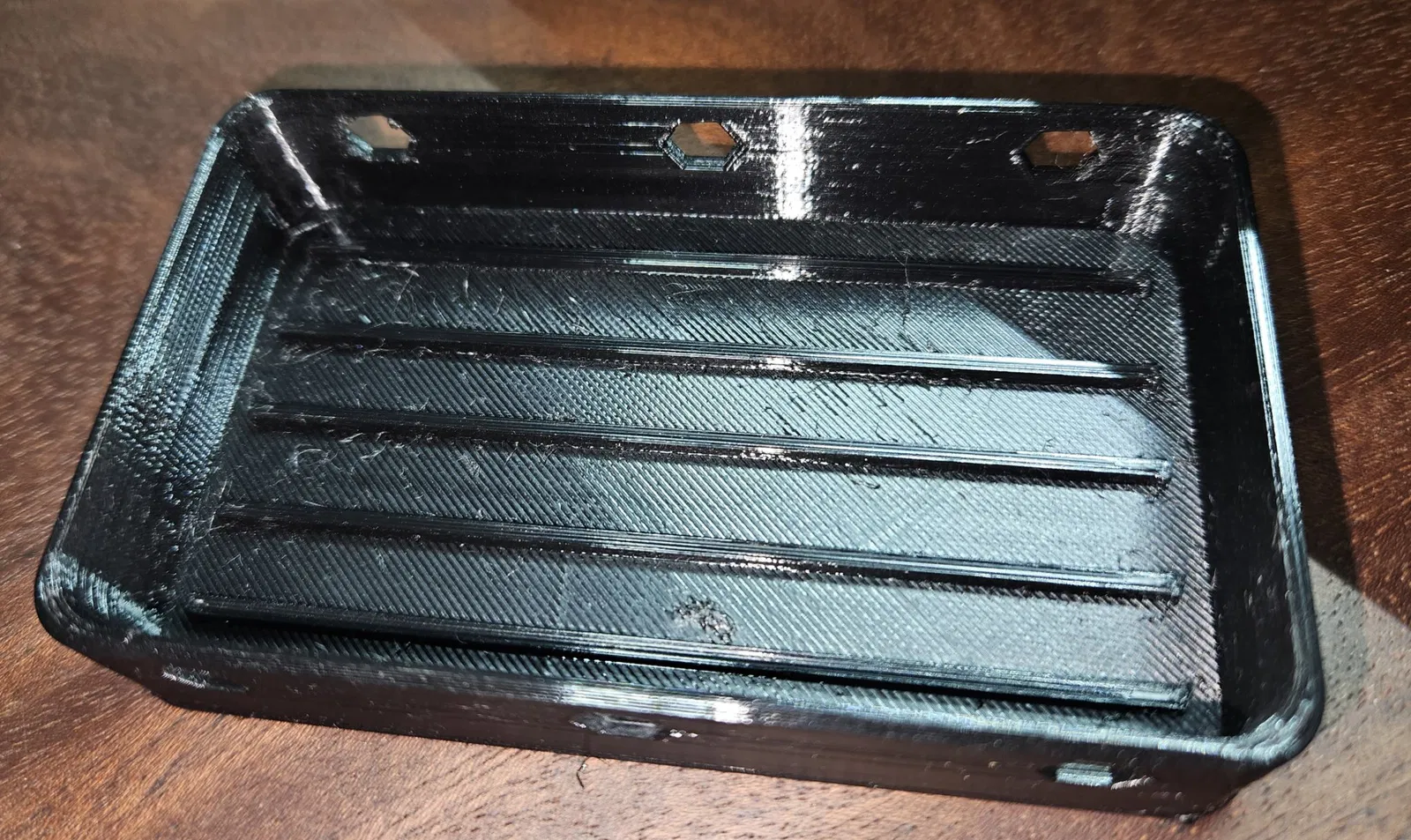 Tôi đã thiết kế đĩa xà phòng này cho xà phòng rửa mặt của tôi, nhỏ hơn xà phòng trung bình, kích thước là 100mm x 60mm để phù hợp với các kệ nhỏ hơn hoặc trên bồn rửa. Bất kỳ loại filament nào cũng có thể được sử dụng mà không cần hỗ trợ. Tôi đã thêm một phiên bản v2 không có lỗ.