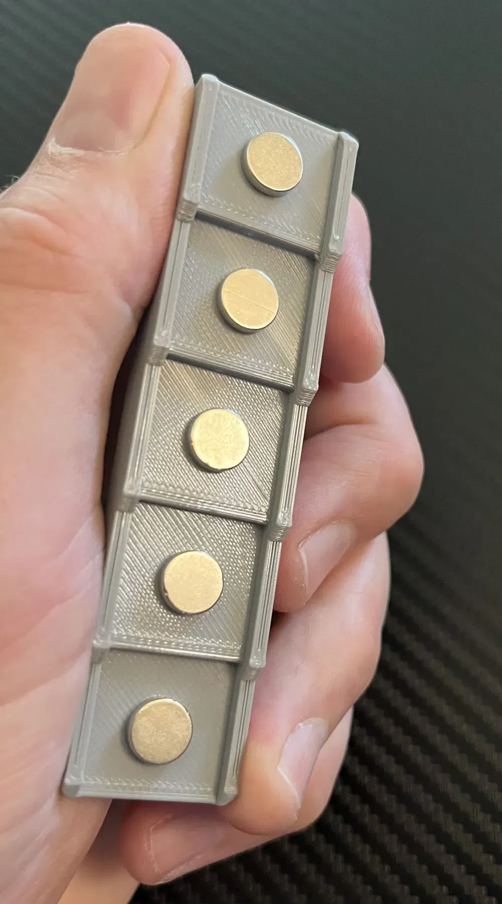 Công cụ có các khoang bên trong để nhúng 6 nam châm 8mm x 2mm bên trong công cụ. Điều này yêu cầu 5 lần dừng để được chèn vào máy cắt ở các mức độ thích hợp cho nam châm được chèn vào. Lần dừng đầu tiên sẽ có hai nam châm được chèn vào, lần thứ hai ở đáy của bậc cao nhất để công cụ có thể được lưu trữ gắn từ tính vào một bề mặt kim loại.