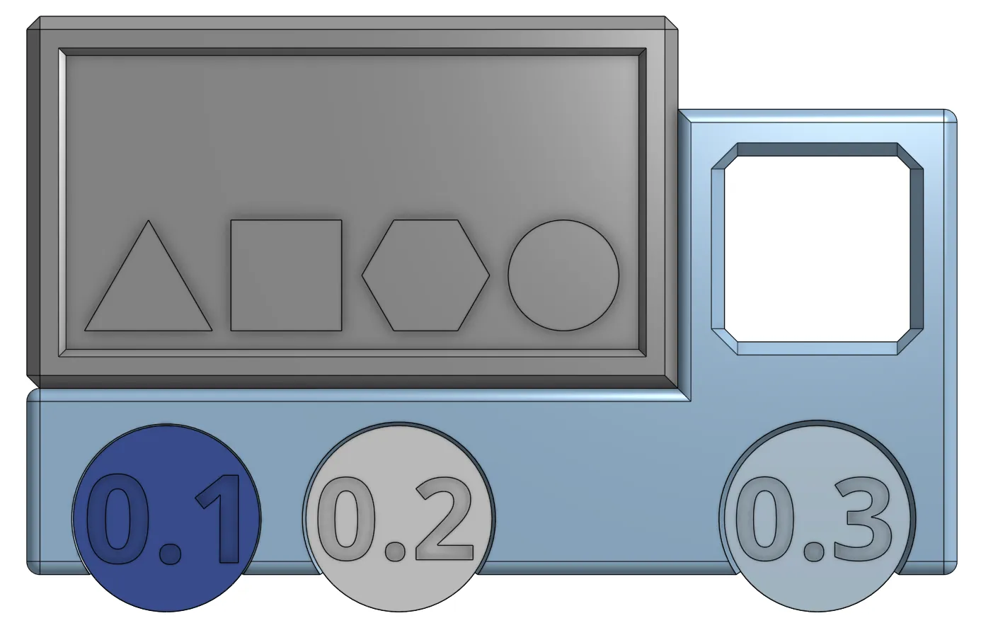 • Mẫu màu: Cuối cùng, đây là một mô hình nhỏ đẹp để thử nghiệm các màu filament mới. Cửa sổ có thể được sử dụng để gắn nhiều xe tải lại với nhau trên một móc chìa khóa. Mô hình cũng đứng vững một mình và có thể được xếp hàng trên bàn làm việc. (Hãy để ý đến một hệ thống lưu trữ trên trang hồ sơ của tôi!)