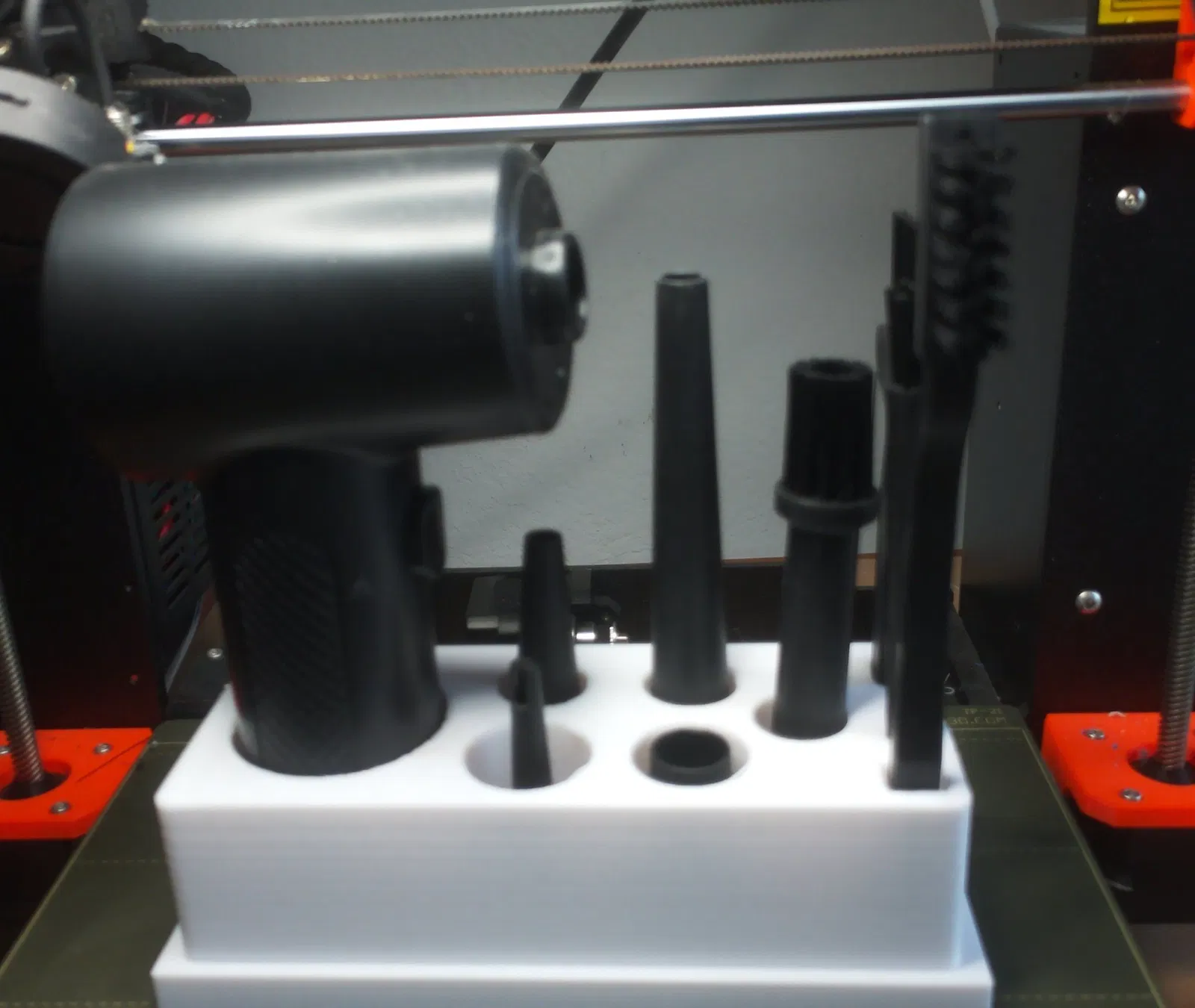 Thiết bị được giao trong một hộp không có chức năng lưu trữ tiện lợi. Vì vậy, tôi đã sử dụng FreeCAD và chỉ sau vài phút trên MK3S, đây là một bộ tổ chức cho toàn bộ bộ dụng cụ.