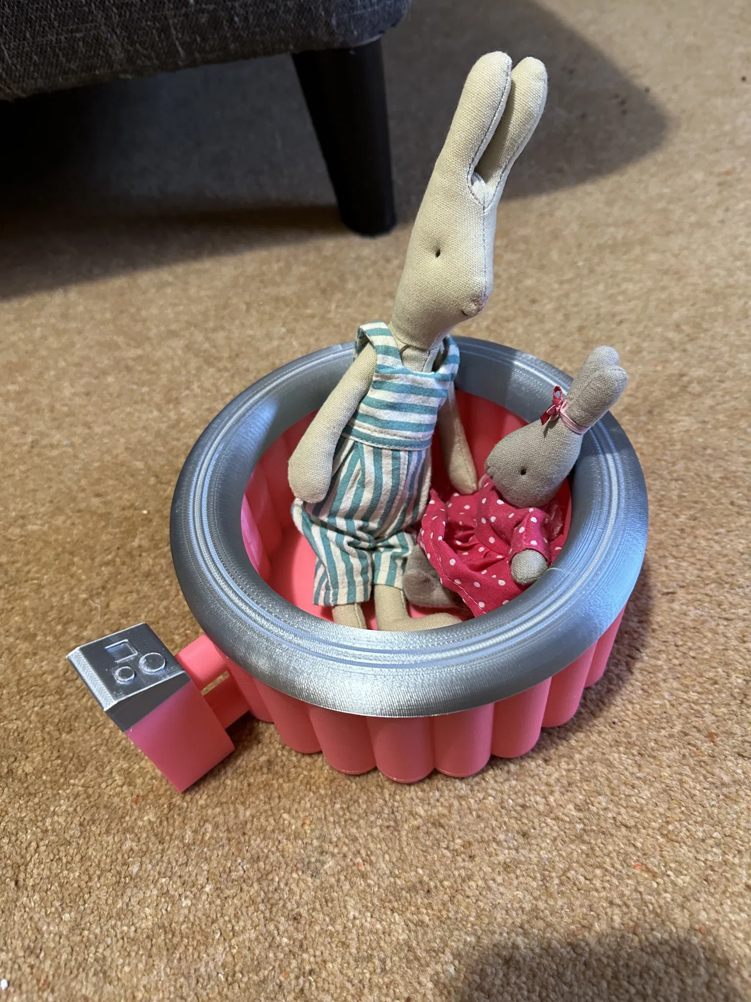 Một mô hình bồn tắm nóng bơm hơi mà tôi đã làm cho những con thú Maileg của con gái tôi.