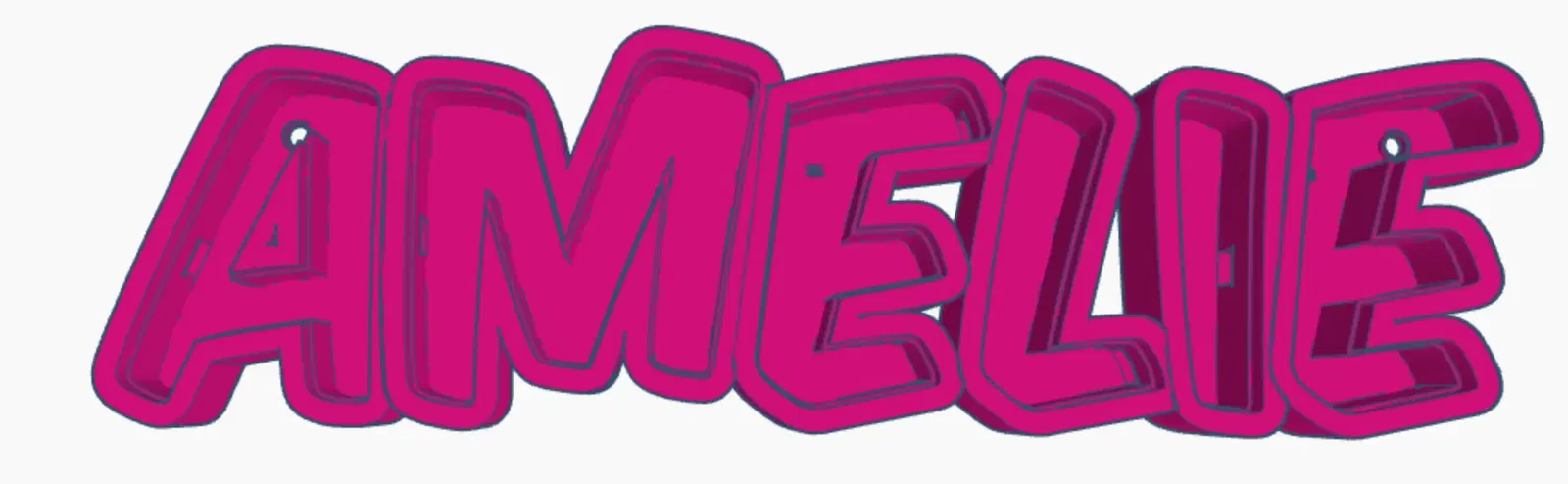 Amelie như một đèn tên LED có thể in. In từng chữ cái riêng lẻ, để dán bằng cáp trong suốt