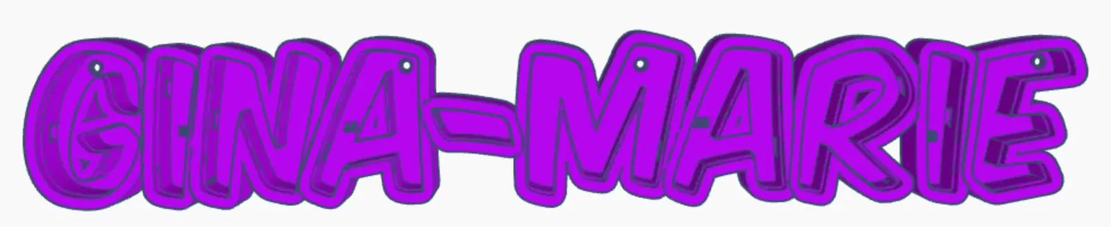 Gina-Marie như một đèn tên LED có thể in được. In từng chữ cái riêng lẻ, để dán các bản nháp cáp