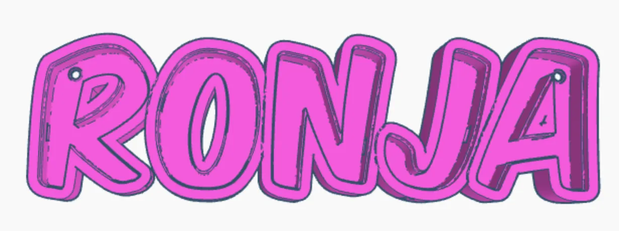 Ronja như một đèn tên LED có thể in được. In từng chữ cái riêng lẻ, để dán các bản nháp cáp