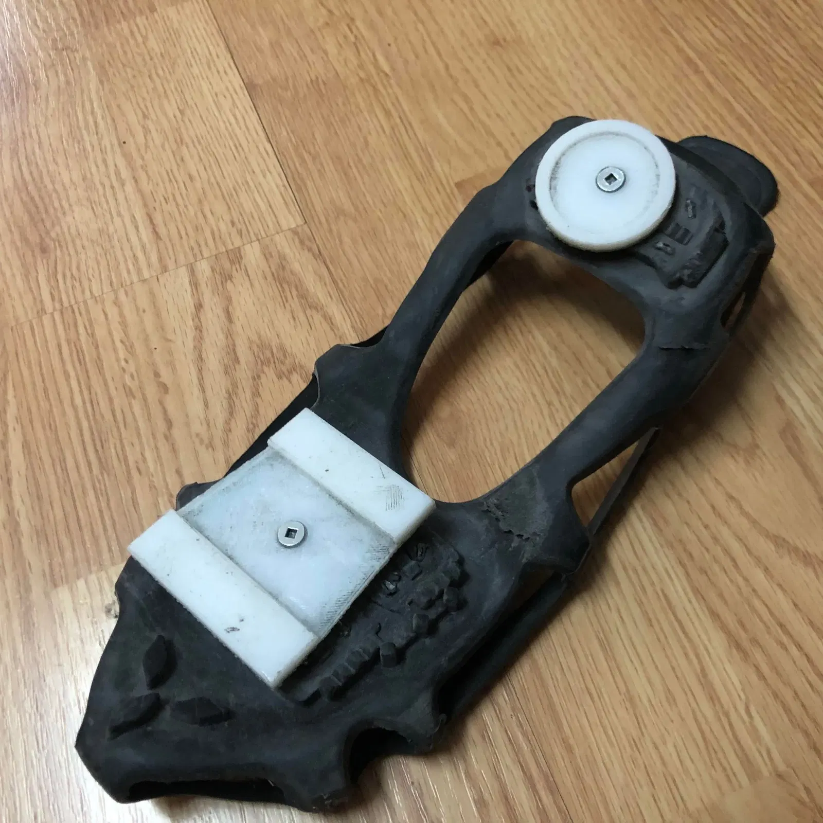 Tôi đã thất vọng với chất lượng của đôi giày đi kèm với máy chạy bộ Katwalk VR 1300$ của mình, vì vậy tôi đã tự làm các phụ kiện của riêng mình bằng cách sử dụng những chiếc đinh cao su “overshoe” cho băng, như vậy tôi có thể chỉ cần đi giày của mình khi chơi.
