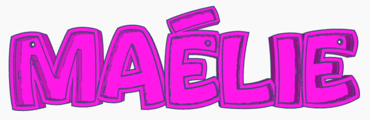 Maélie như một đèn tên LED có thể in được. In từng chữ cái riêng lẻ, để dán các bản nháp cáp
