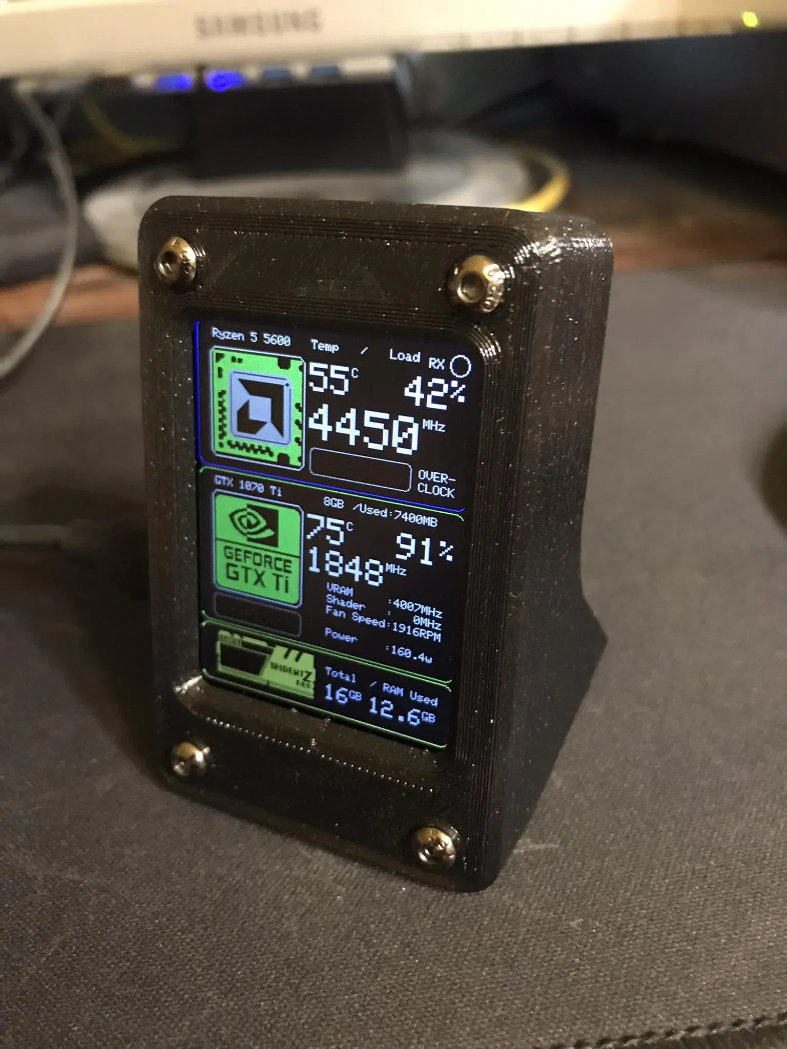 Mô hình này là phiên bản của tôi về vỏ cho PhatStats, được thiết kế bởi Rupert Hirst với màn hình “ili9341 TFT PC Performance Monitor Display”. Bạn có thể tìm thấy chi tiết tại đây: https://hackaday.io/project/19018-phatstats-pc-performance-tft-display