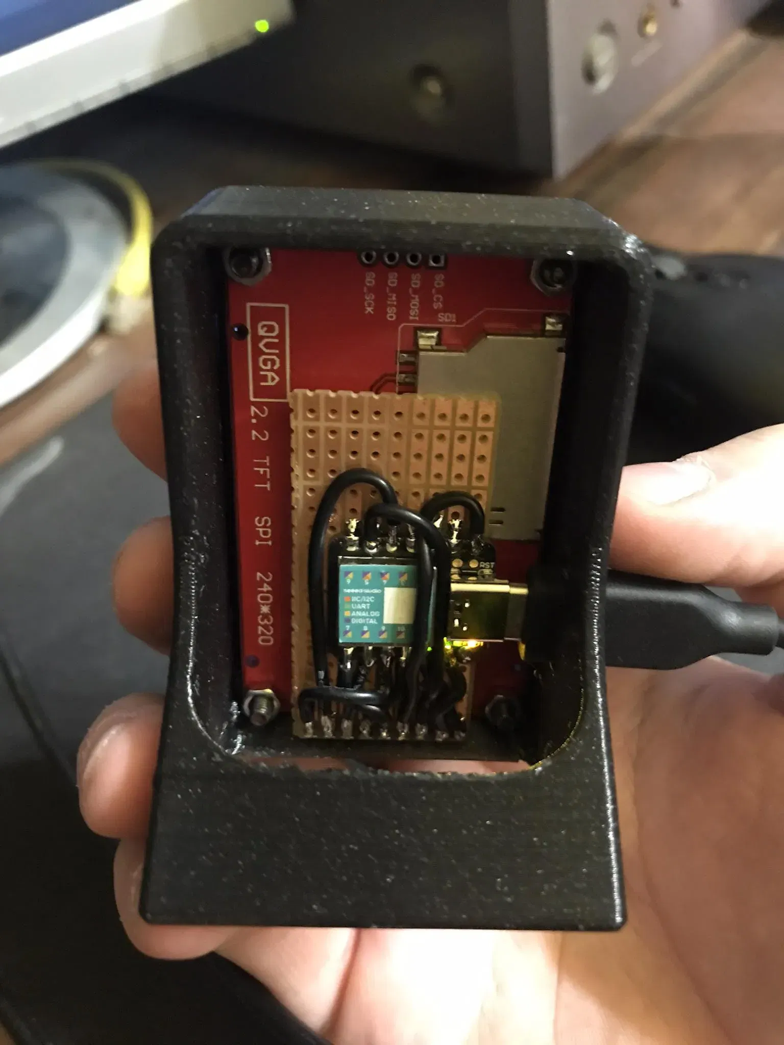 Đối với phiên bản của tôi, tôi đã sử dụng màn hình 2.2 inch ili9341 và bo mạch seeed studio xiao samd21 được kết nối với nhau bằng một mảnh bảng thử nghiệm và một số dây. Bạn có thể thấy cách nó được lắp ráp trên các bức ảnh.