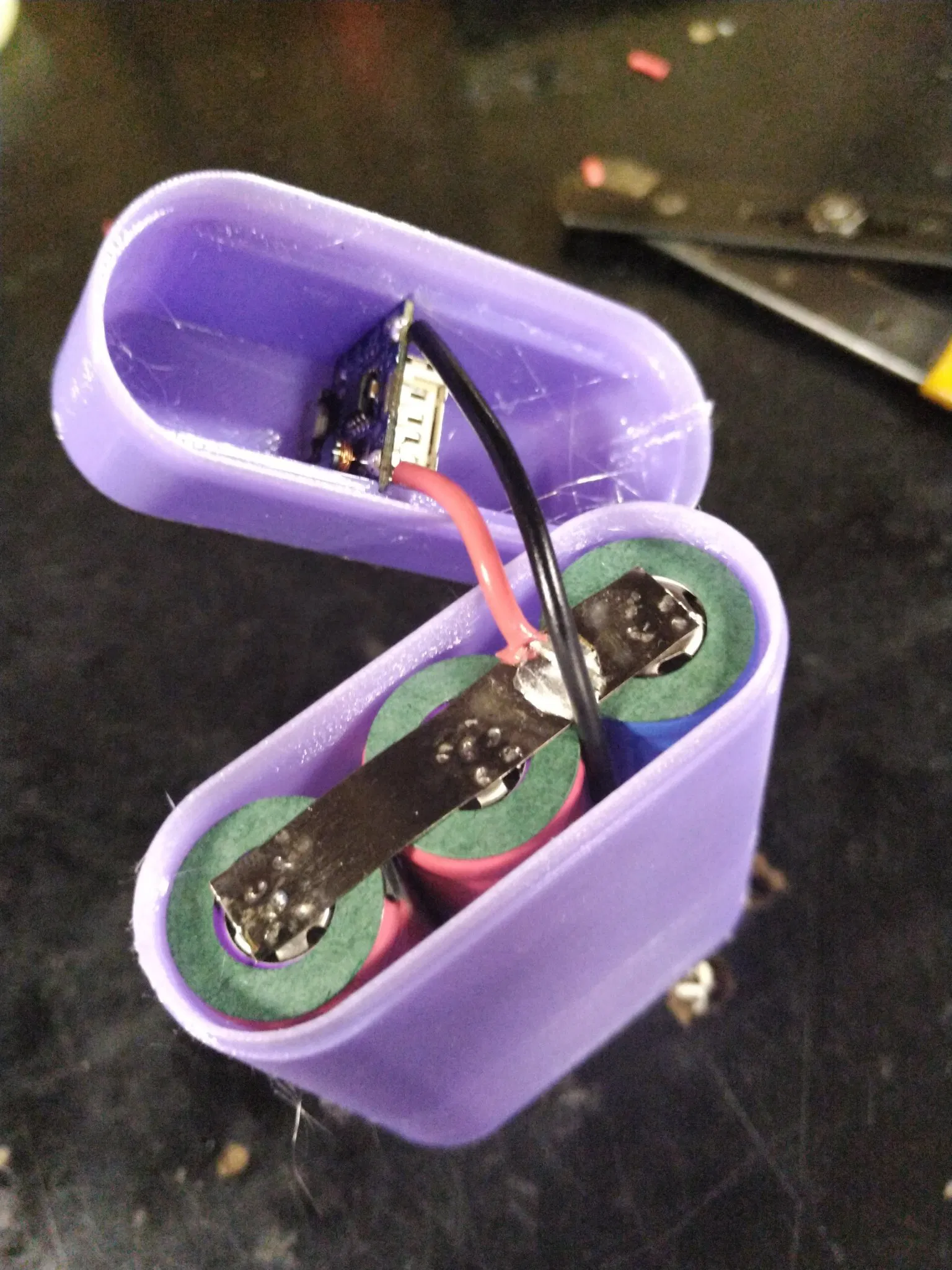 Nhược điểm: kém chắc chắn hơn về cấu trúc, có nhiều không gian chết ở trên, cần một chút vật liệu in và thời gian in nhiều hơn so với pin dự phòng 3-cell của anh ấy.