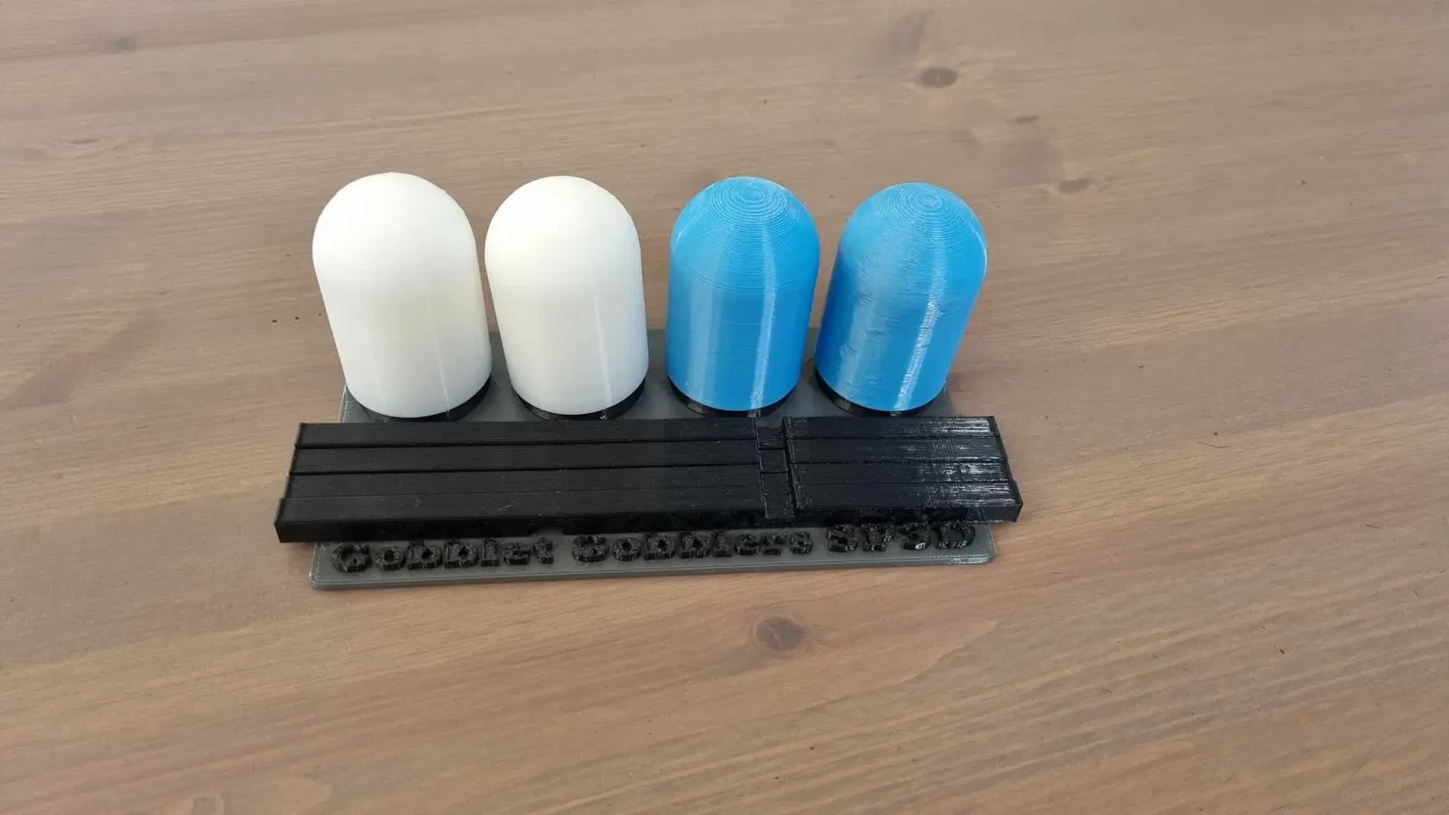 vì tôi gặp khó khăn khi in cái gốc, vì vậy đã chế tạo một giá đỡ mới (của mmeidl78) , nhưng cái đó cũng không thể lưu trữ tất cả. Trong tệp PIONS, bạn sẽ có 3 quân cờ, vì vậy hãy in tệp hai lần theo màu sắc.