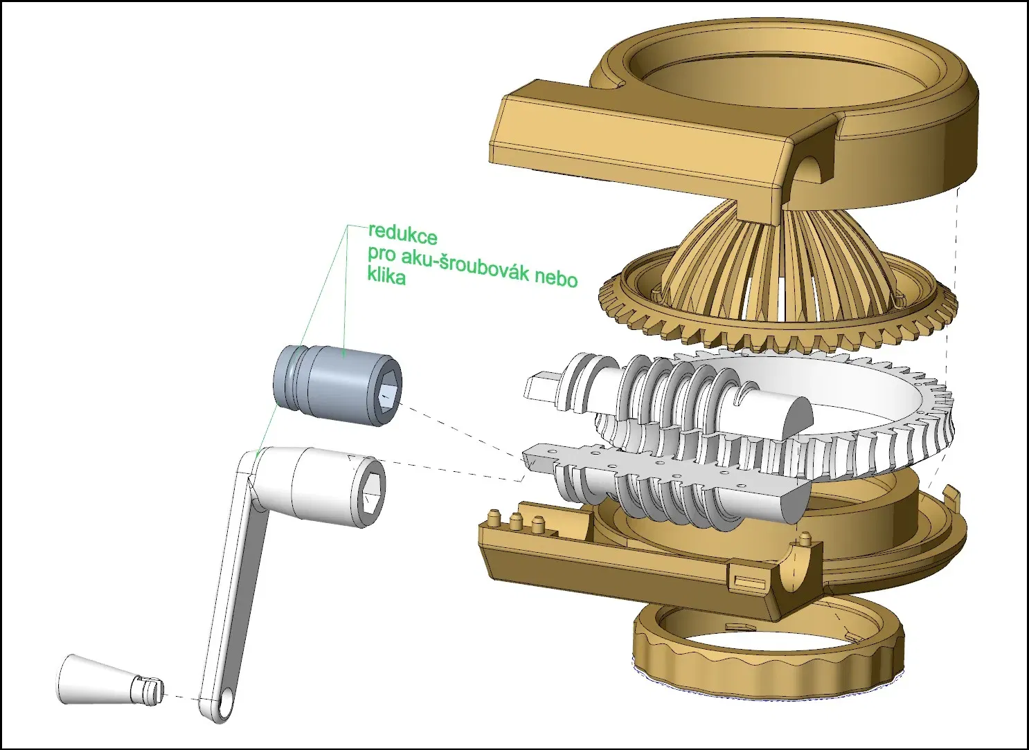 Nhấn với bánh răng sâu với giảm trên một cái lọ. Sử dụng chuyển đổi và tay cầm xoay trung tâm và các cam quýt (nhấn).