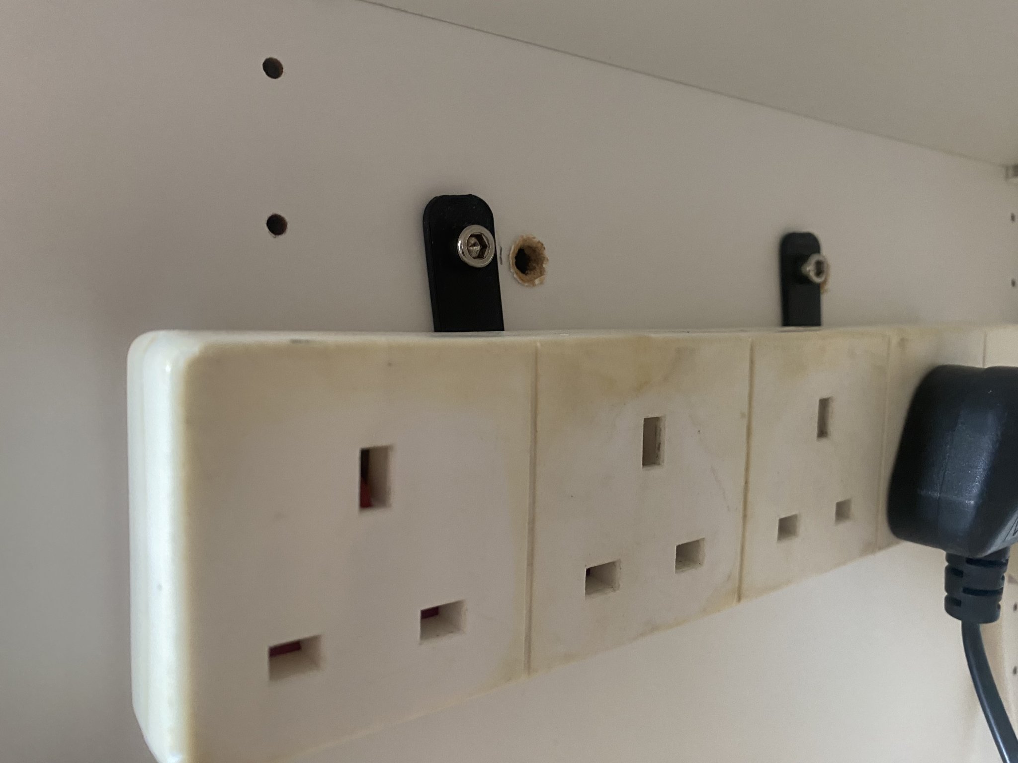 Thất vọng khi cố gắng căn chỉnh các lỗ gắn trên một dải điện với các lỗ trên tường.